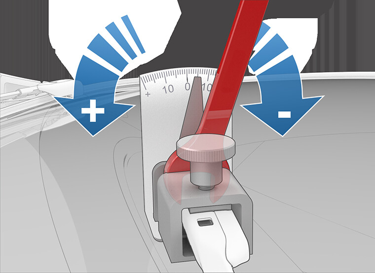 - Loosen the plate screw of the wiper adjustment tool, so that the measurement plate rotates freely.