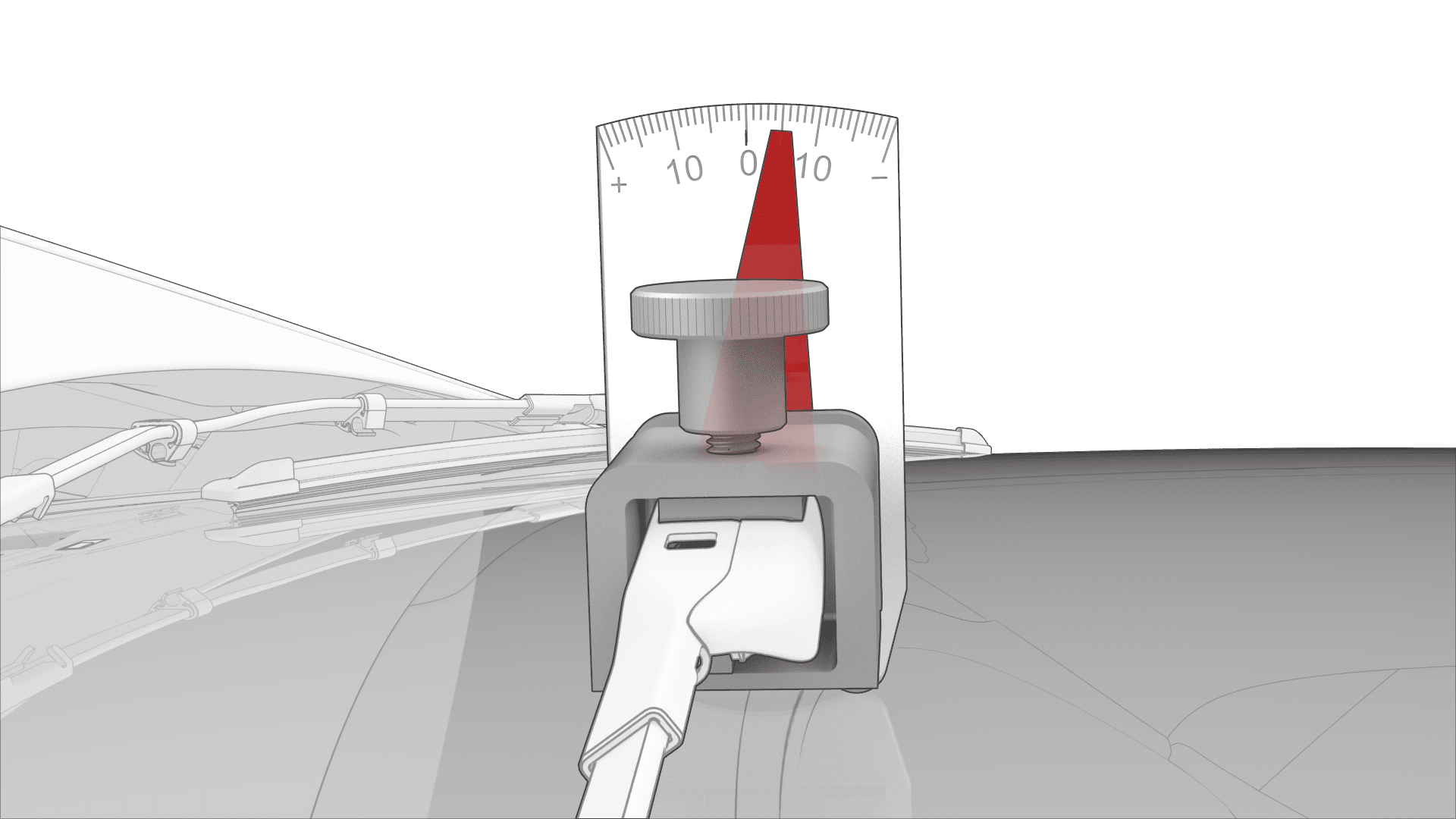 - Check the wiper arm angle, and use a 24 mm wrench to rotate the tool as necessary to set the correct angle. Adjust the wiper arm angle to -4 (+/- 0.5).