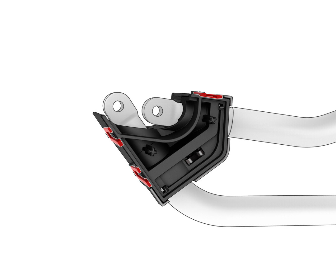 - Install the safety cap on the busbar brackets, making sure to engage the two locking tabs.
