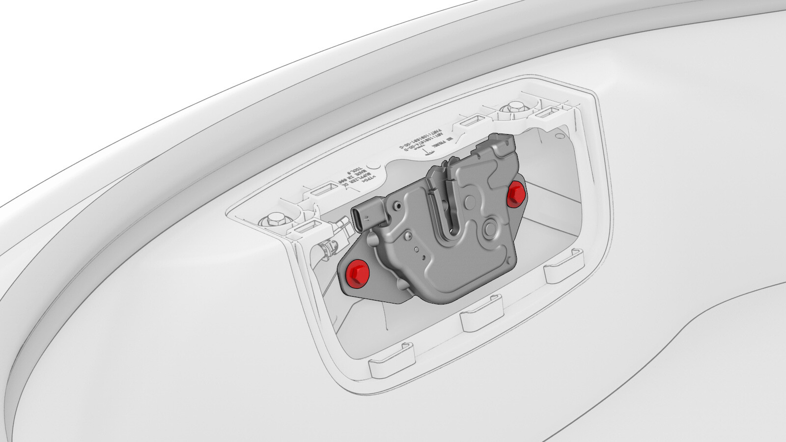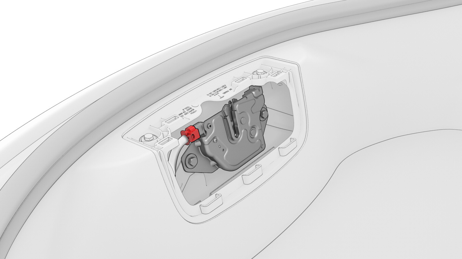 When connecting the electrical harness to the hood latch: Push the red locking tab towards the connector to engage the locking mechanism. DO NOT push down or pull up on the red locking tab.