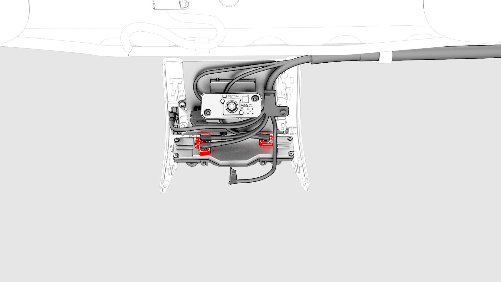 - Bring the upper quad camera cover to the windshield bracket, and then connect the electrical harness to the occupant camera on the inside of the cover.