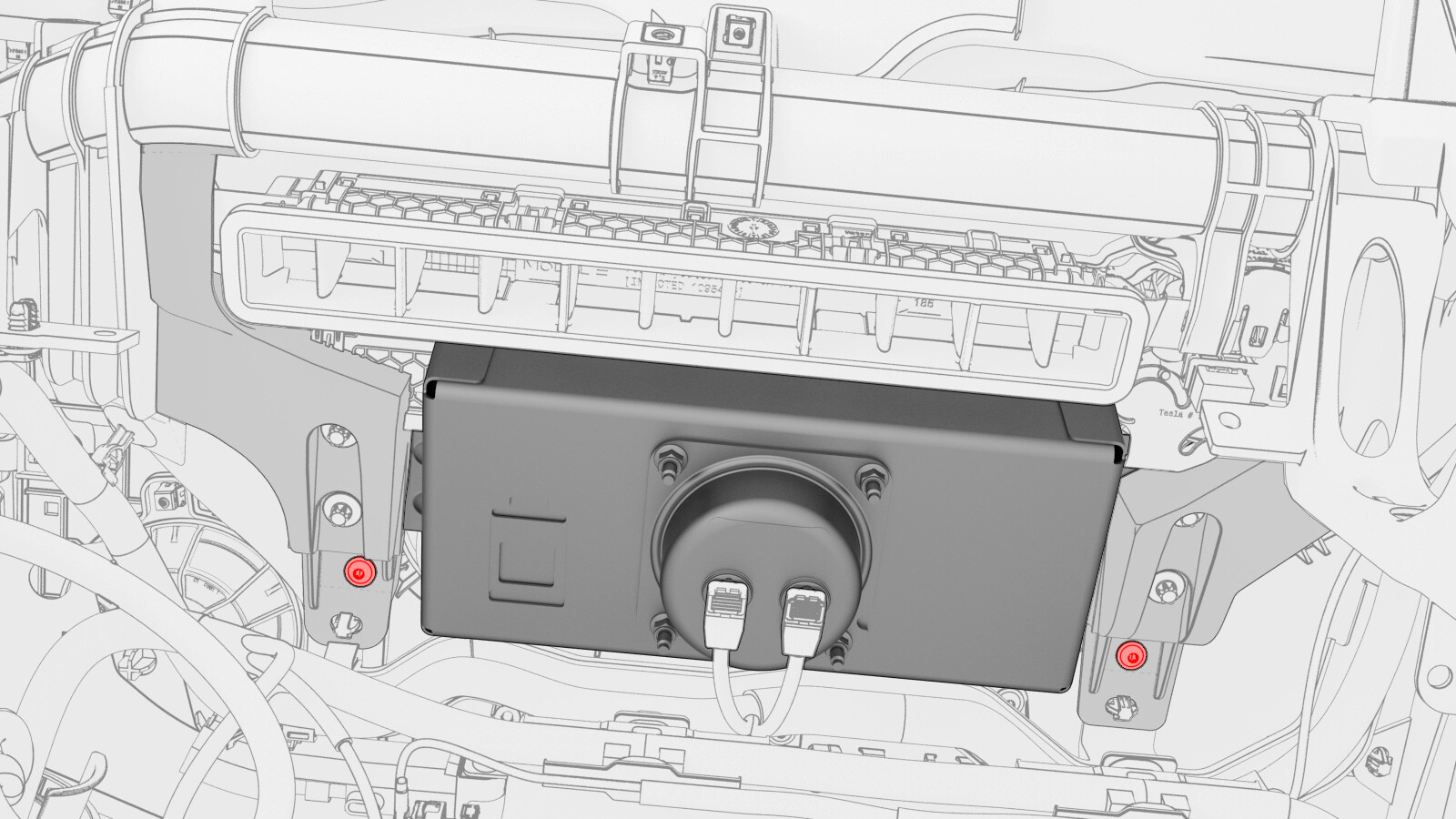 - Remove the screws (x2) that attach the eCall antenna to the vehicle (torque 2.7 Nm), and then remove the eCall antenna assembly from the vehicle.