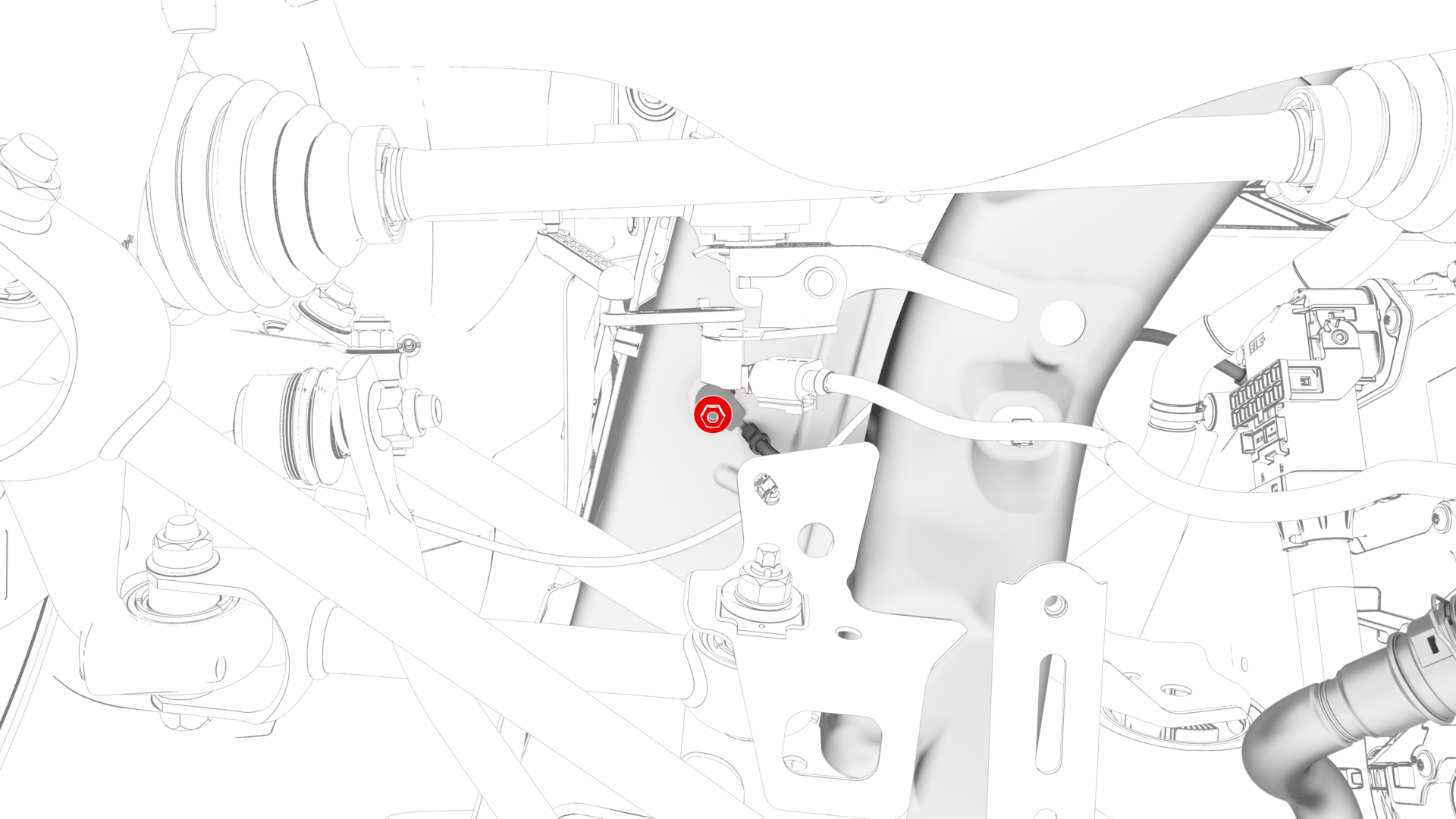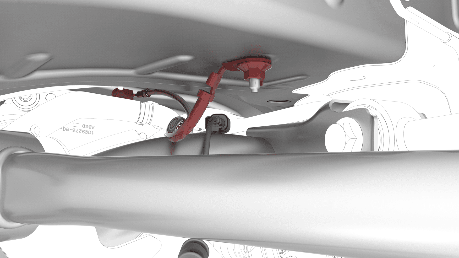 - Fasten the clip that attaches the rear drive unit ground strap to the rear subframe.