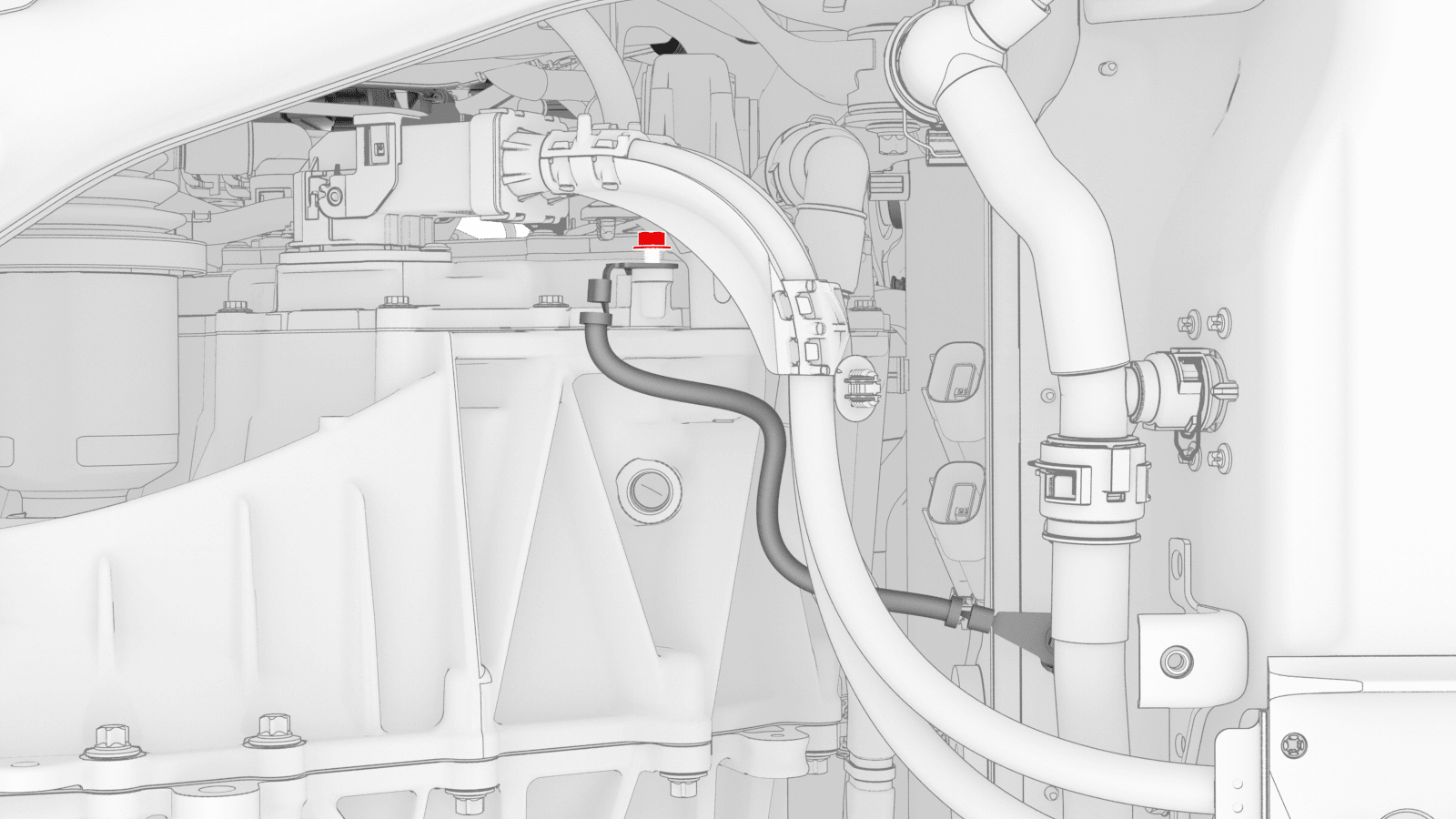 10 Nm (7.4 lbs-ft) - Slide the red release tab to unlock the front drive unit HV harness connector.