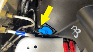 | Lower bolt that attaches the windshield washer reservoir to the body |