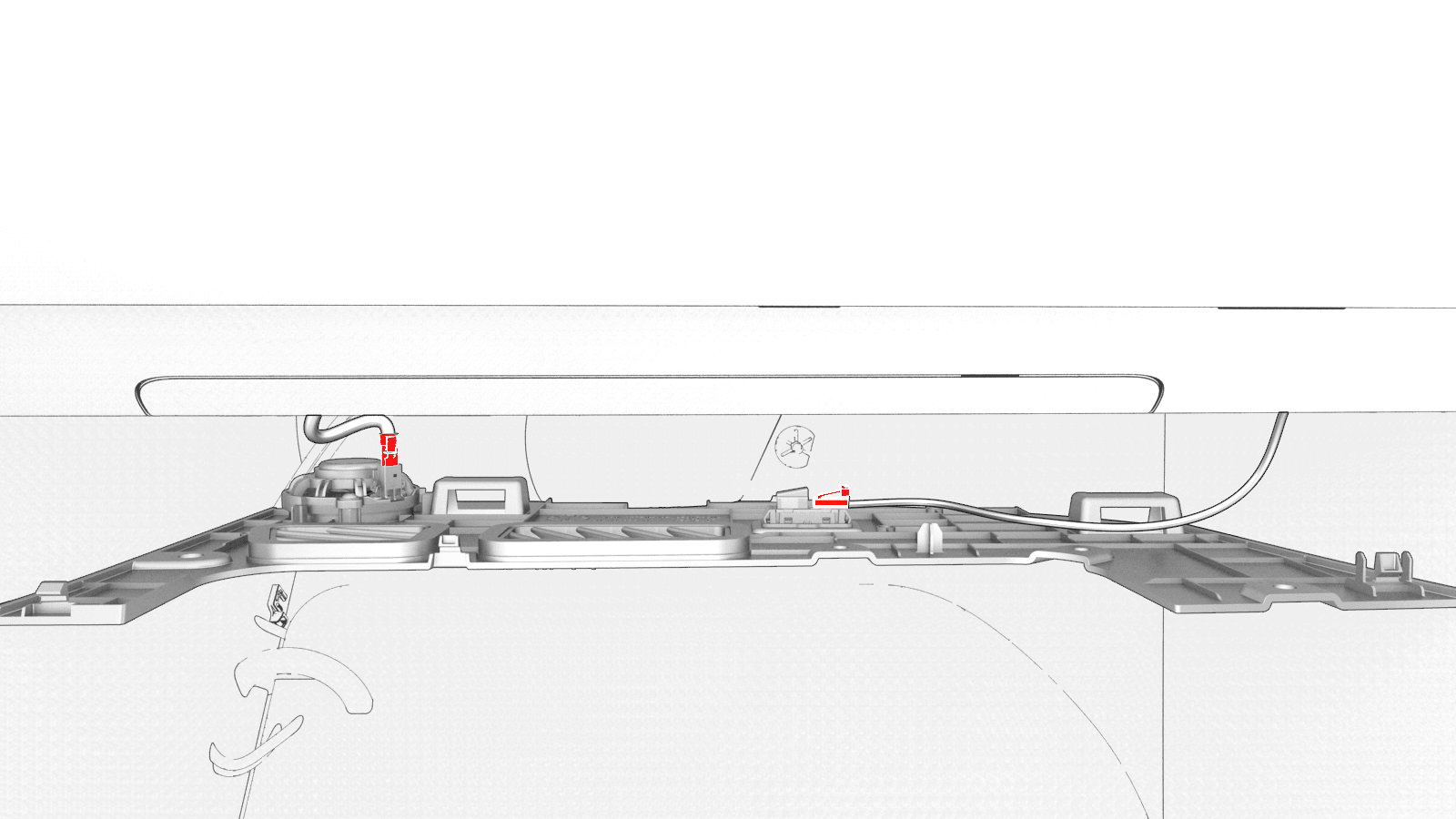 Disconnect the electrical wiring harness connectors from the puddle light and emergency speaker.