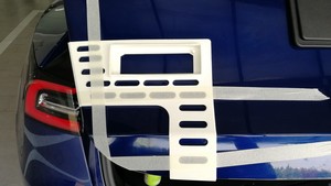 - Open the rear trunk partially and install the badge fixture onto the rear trunk.