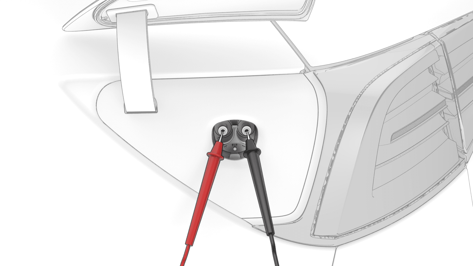 4. Set the multimeter to measure DC voltage, gently touch the probes to the 12V/LV auxiliary battery terminals, and verify the multimeter displays the appropriate voltage.