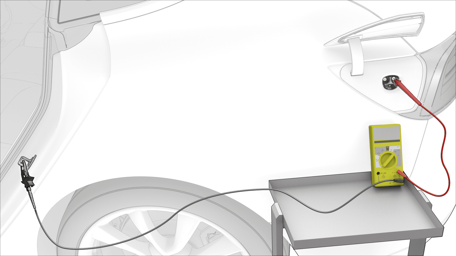 13. If all previous charge port voltage readings were less than 10V, remove the multimeter ground connector from the LH rear door latch striker or the liftgate striker and return to the procedure that specified the charge port voltage check.