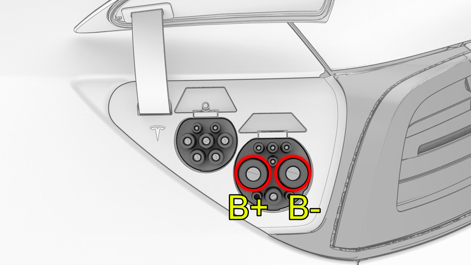 8. Use the multimeter to check voltages at the charge port DC terminals B+ and B-.