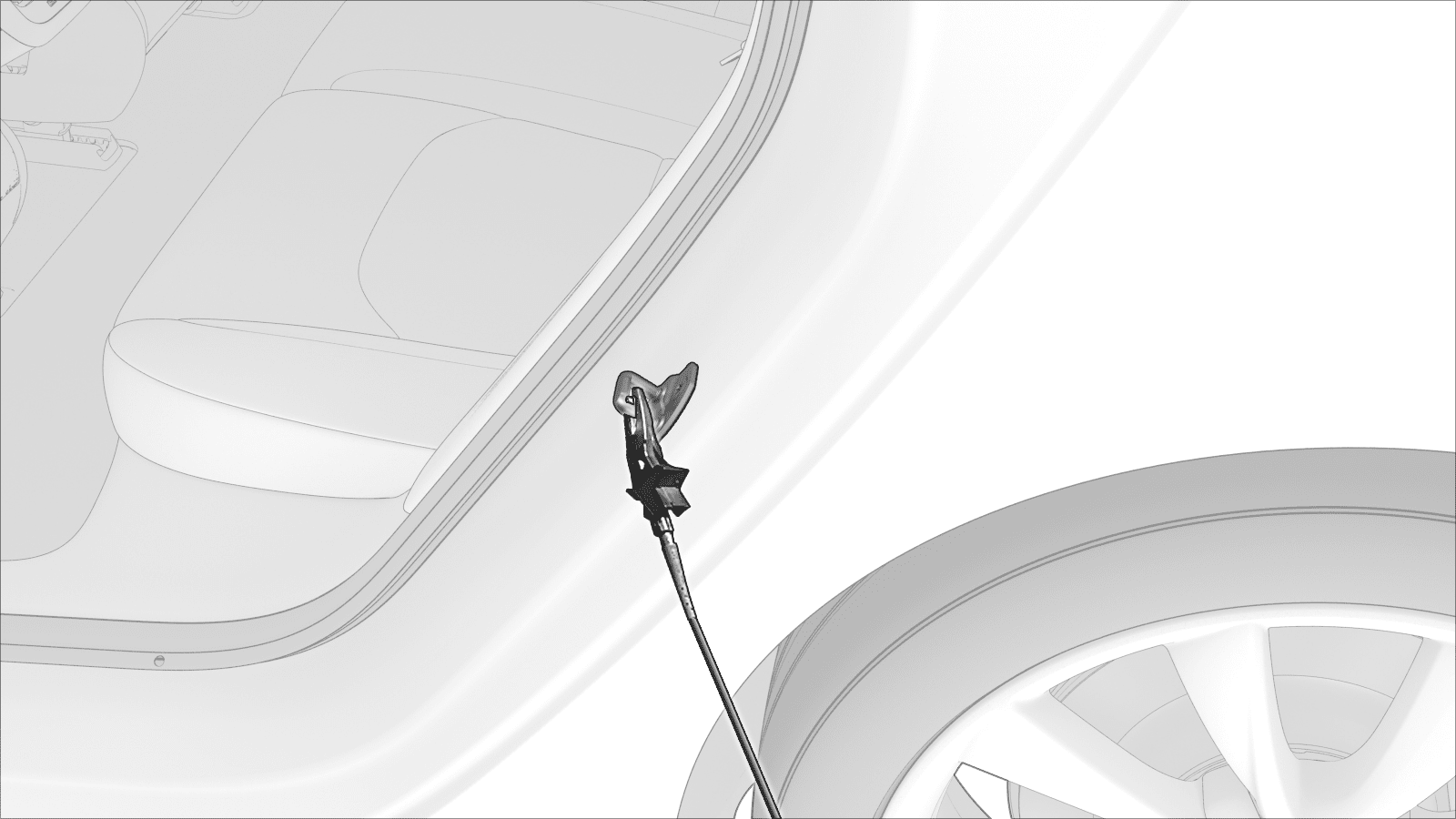 10. Prepare the multimeter with the black alligator clip on the negative lead, and then ground the alligator clip to the LH rear door latch striker or the liftgate striker.