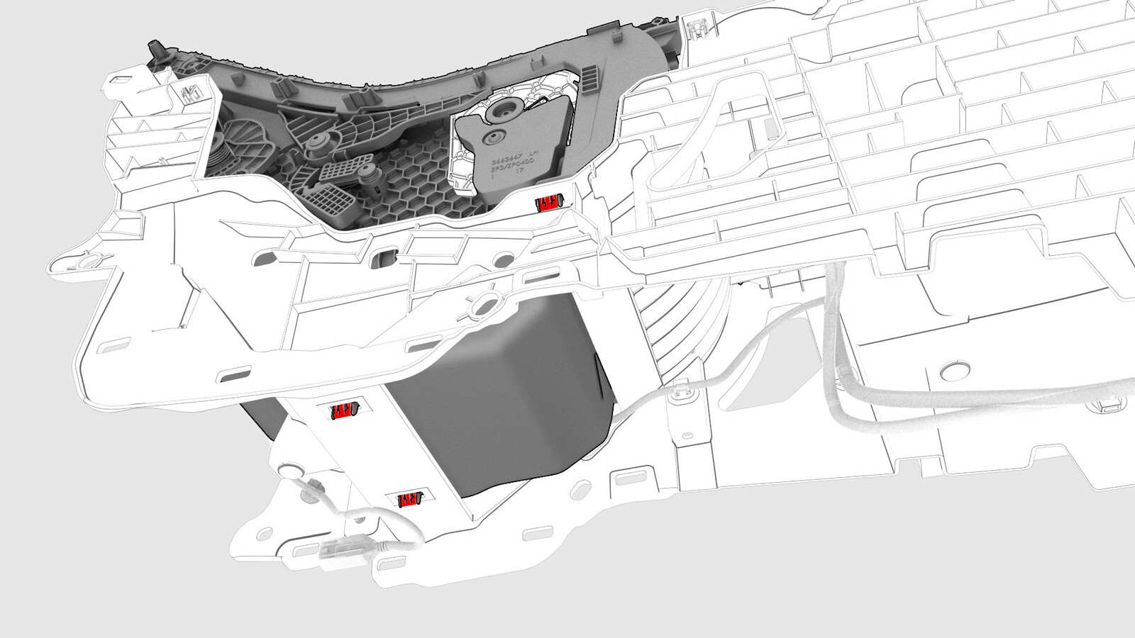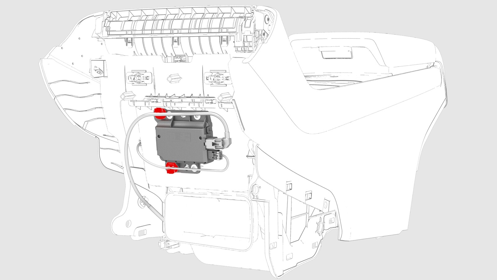 - Disconnect the electrical connector from security controller, and then remove the cup holder decor.