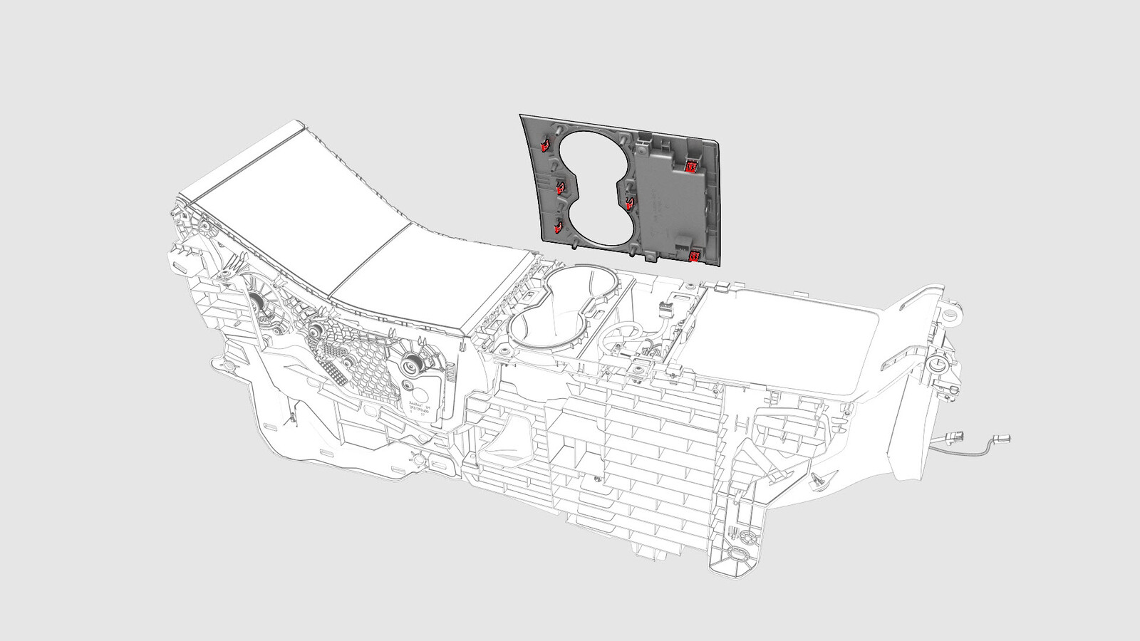 - Release the clips that attach the cup holder assembly to the center console, and then remove the cup holder assembly from the center console.