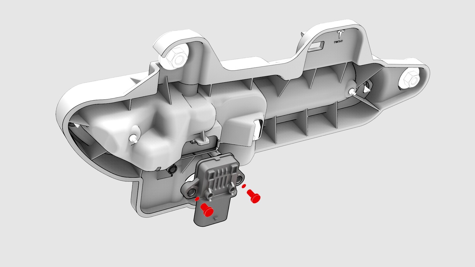 - Remove the screws that attach the hall sensor to the LH door exterior release handle, and then remove the hall sensor from the release handle.