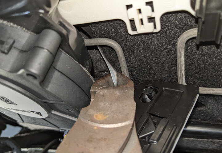 - Position LH front seat to gain access below seat cushion