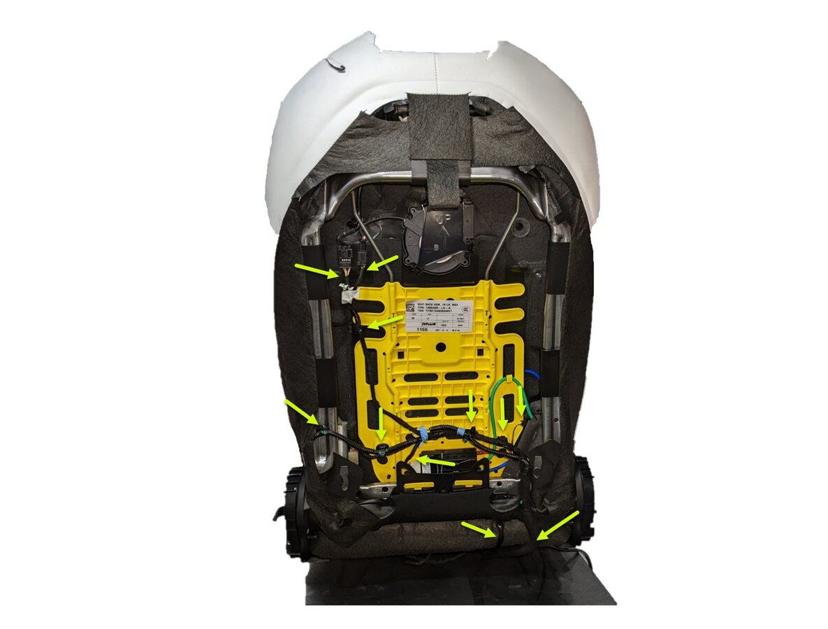 NoteDo not mix parts when discarding. Tear down items: Upholstery, Wiring harnesses, Side airbag, Pre-tensioner, Seat belt buckle, Electric motors, Seat Frame. Bins are labeled as, trash, E-waste, Hazardous wastes (waste safety device) and metal recycling as well as standard recycling. It is prohibited to self deploy airbags. Side airbags and pretensioners go in SRS/Waste Safety Devices. Electric Motors & Wire harnesses into E-Waste. Metal seat back frame and seat bottoms go into our standard scrap metal recycling.