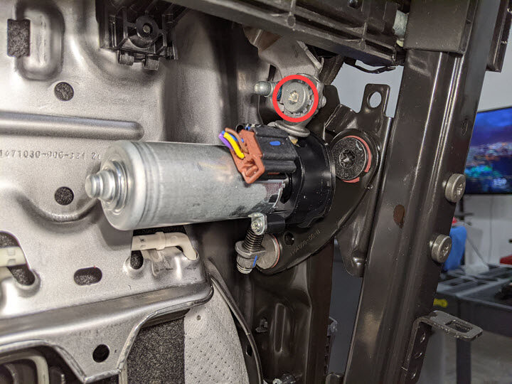 Remove bolt securing the power lumbar assembly to seat back frame