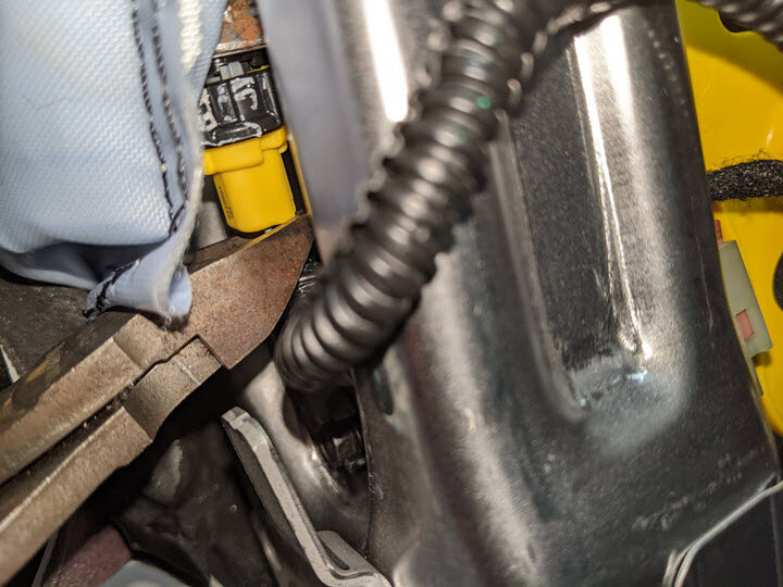 Only after removing the airbag and pre-tensioner (if applicable) can the