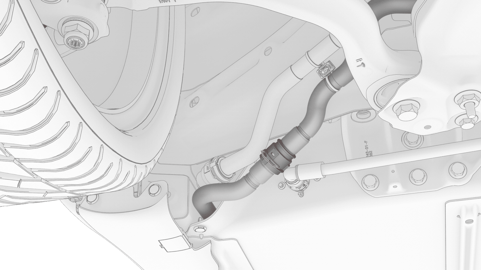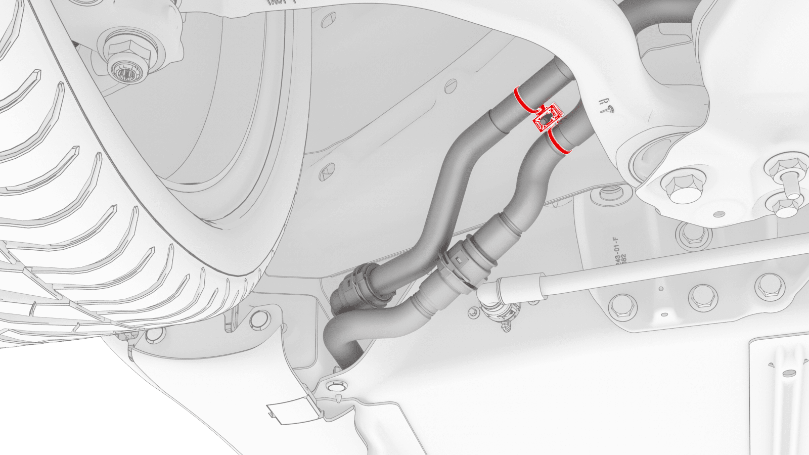 - Release the clip that attaches the front drive unit inverter inlet hose to the front subframe.