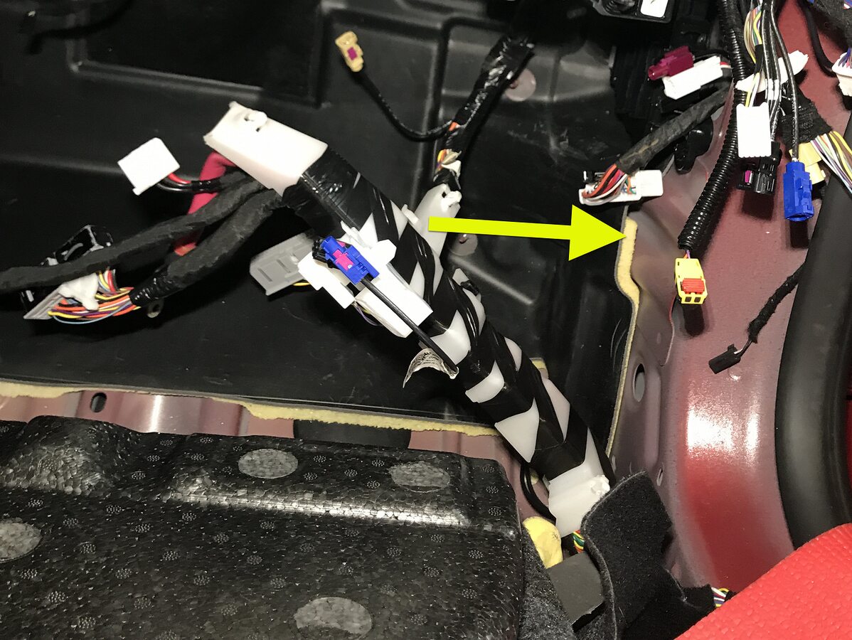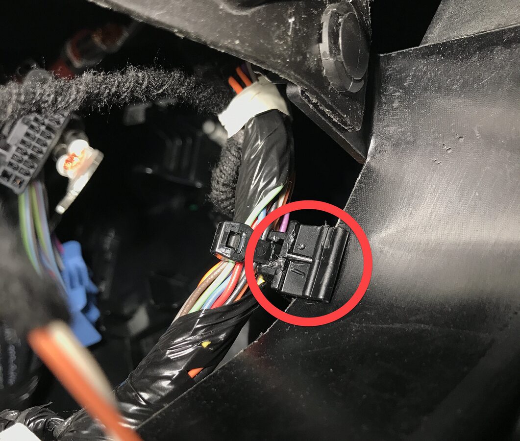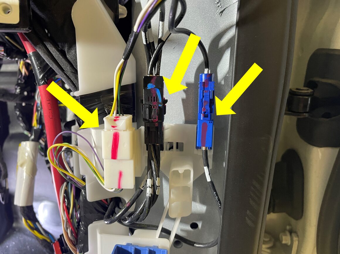 - Connect the connectors at the harness clip at the RH lower A-pillar area.