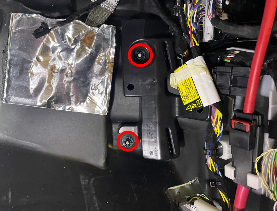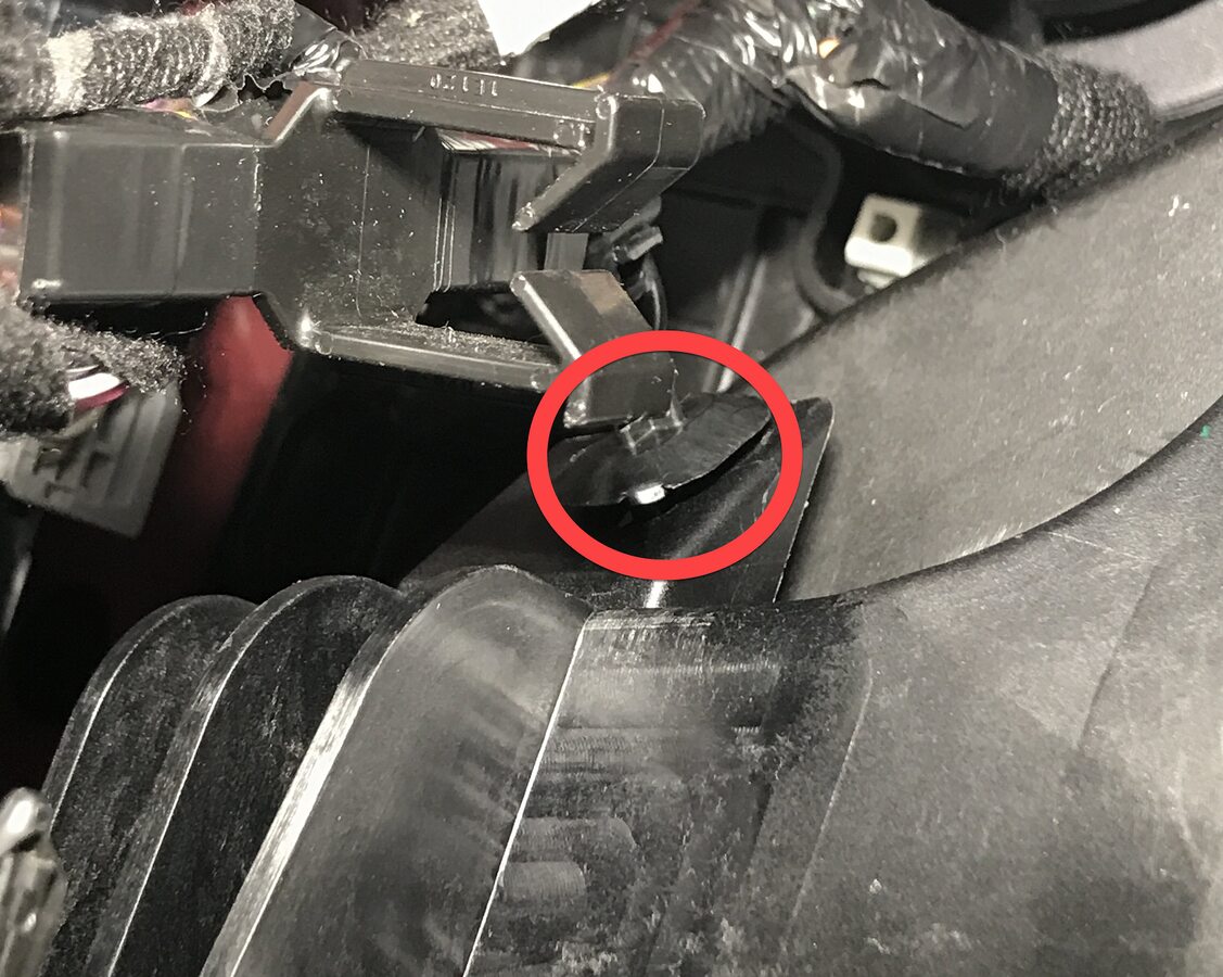 - Maneuver RH body controller module into position under the IP carrier, align the W clip with the body cut out, and then slide down the RH body controller module to secure it.