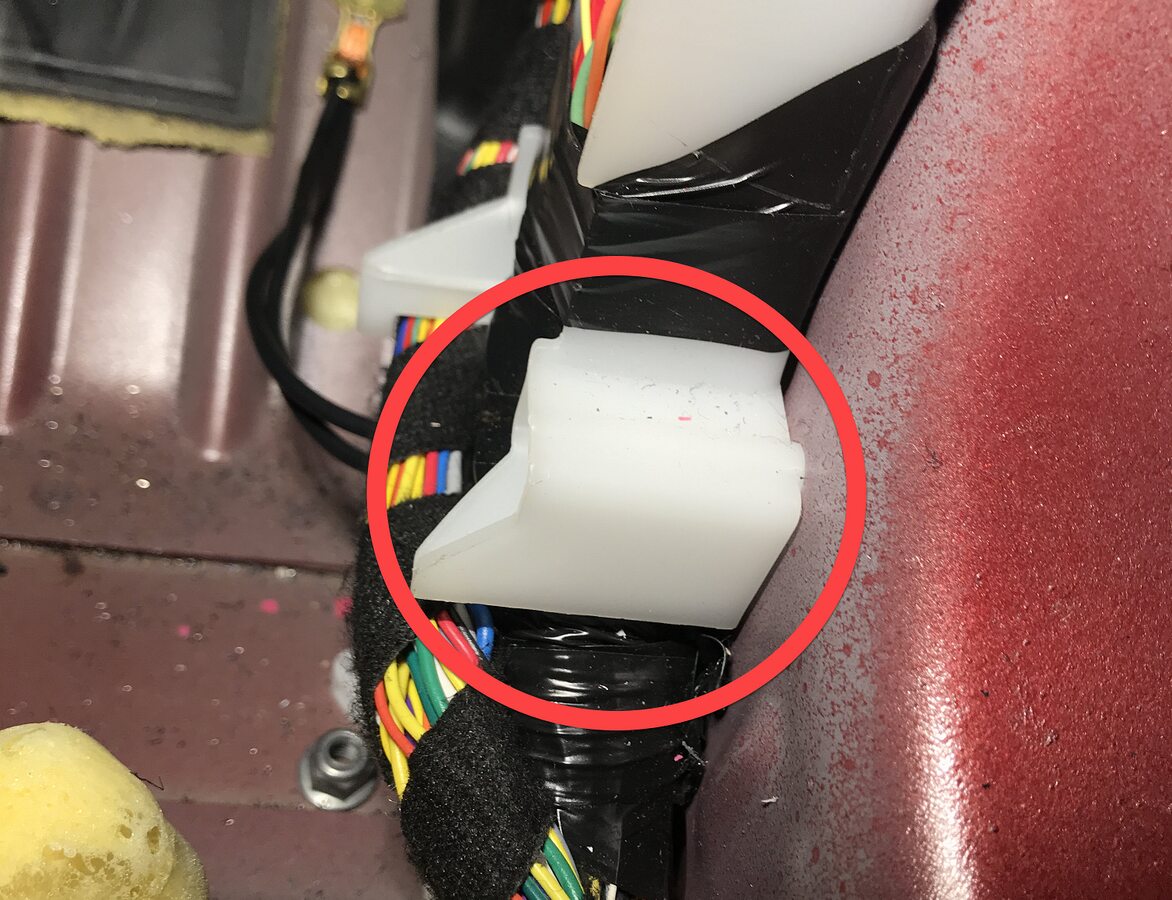 - Install the RH body harness clip to the RH lower A-pillar area.