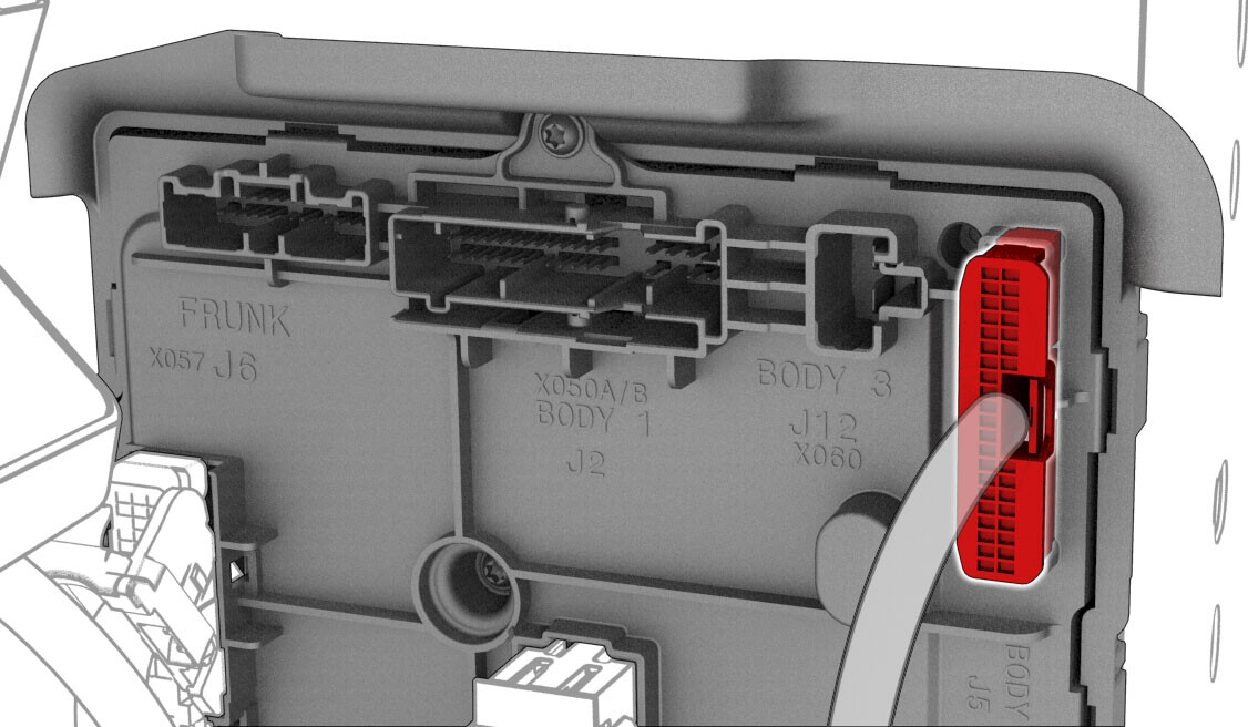 - Release the connector lock, and then disconnect the J7 door electrical connector from the RH body controller module.