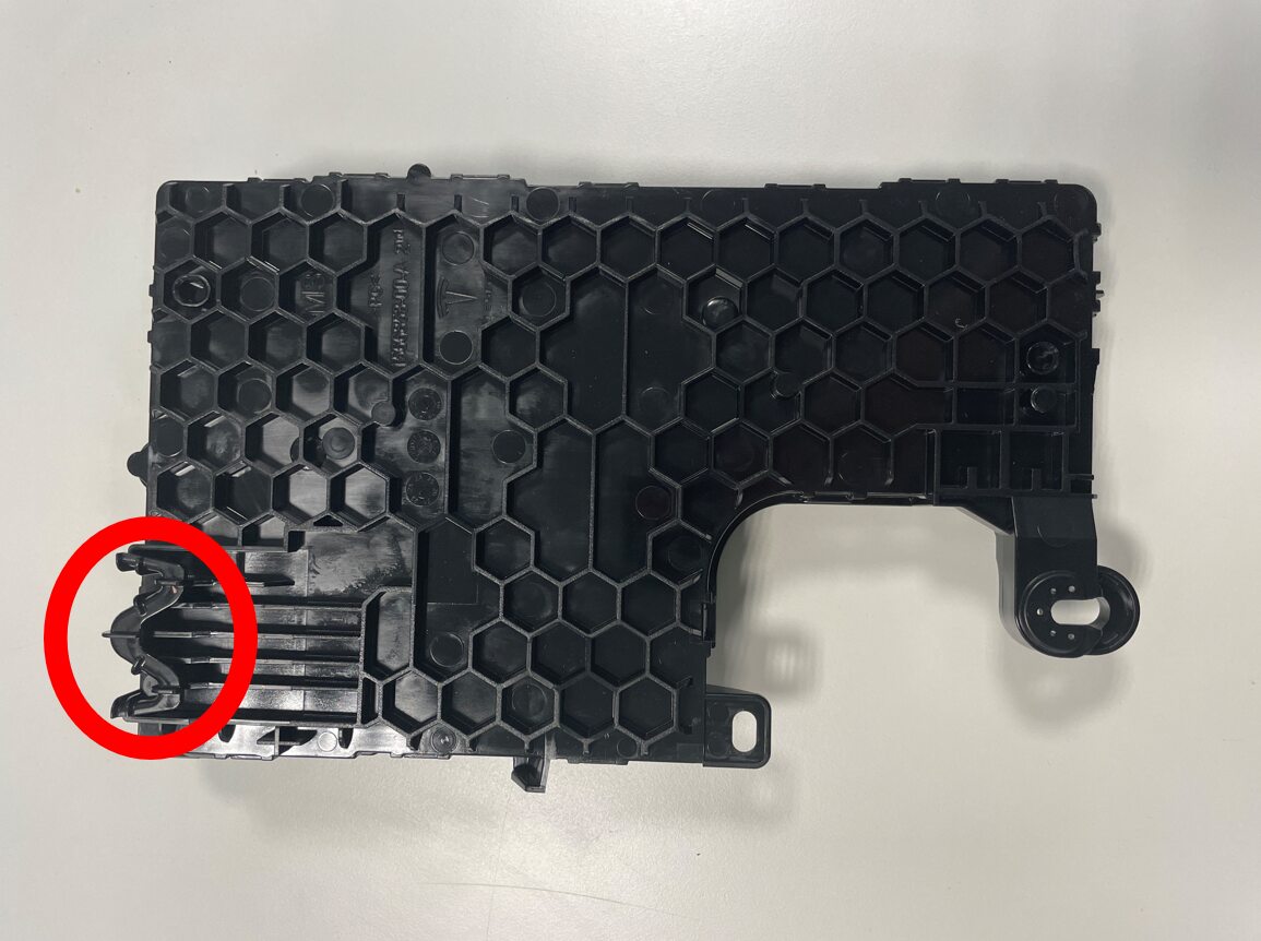 - Slide the RH body controller module upwards to release the W clip, maneuver the RH body controller module out from under the IP, and then remove the RH body controller module from the vehicle.