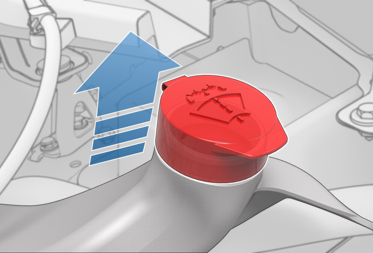 Use a plastic trim tool to remove the cap from the windshield washer reservoir filler neck.