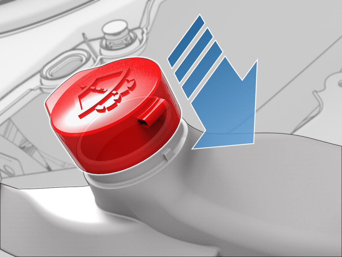- Align the locating slot on the cap with the locating tab on the filler neck, and then fully seat the cap onto the filler neck.