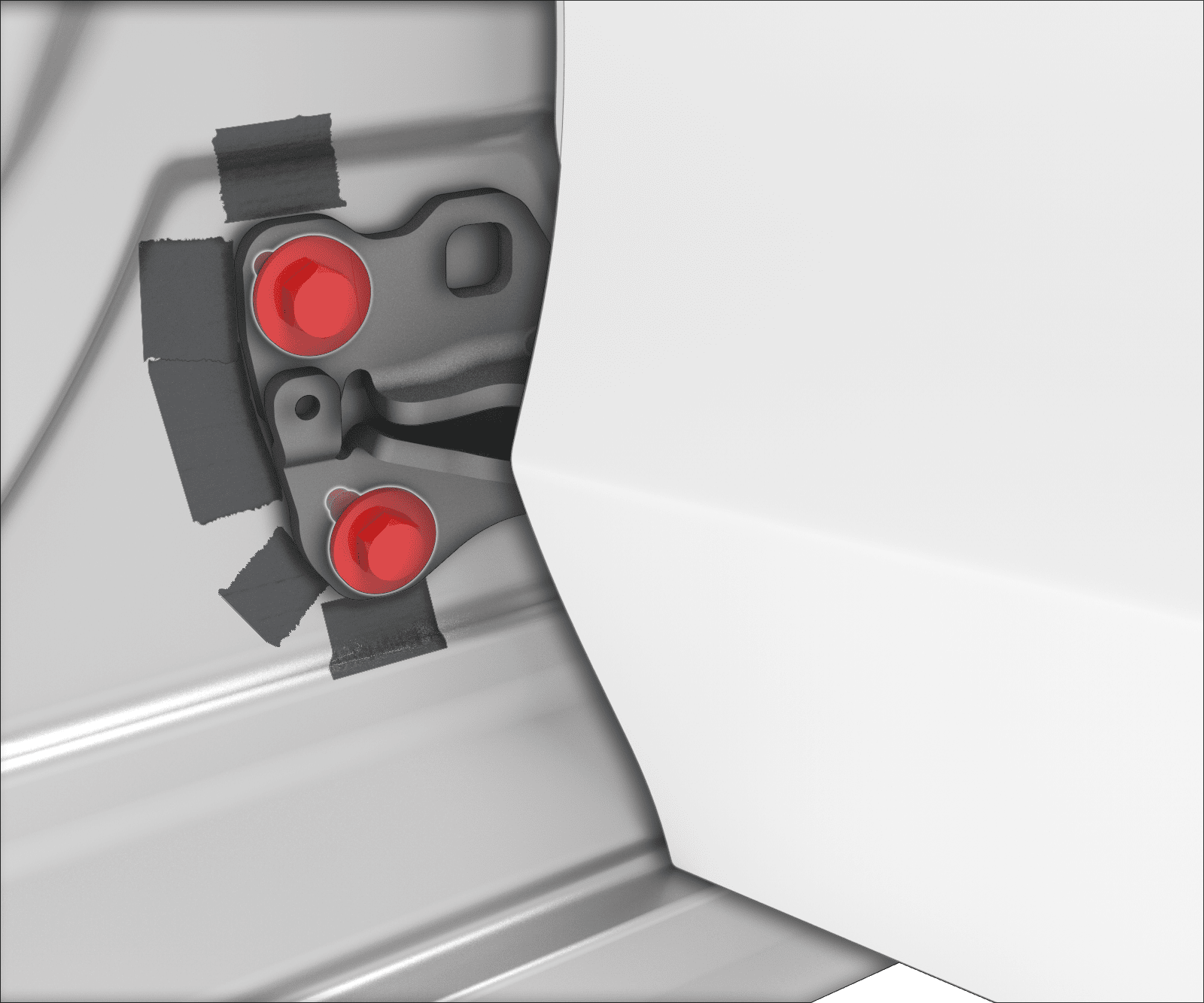 - Apply tape to the body to mark the rear lower hinge location.