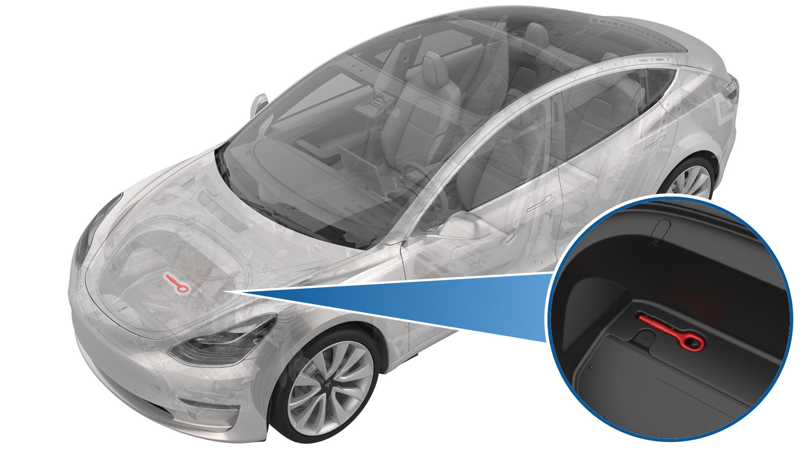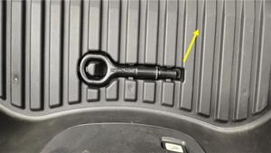 - Remove the emergency tow hook from the underhood storage unit.