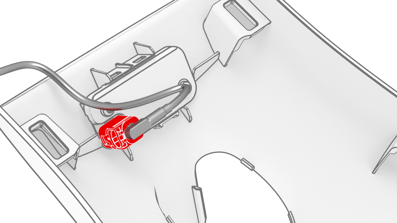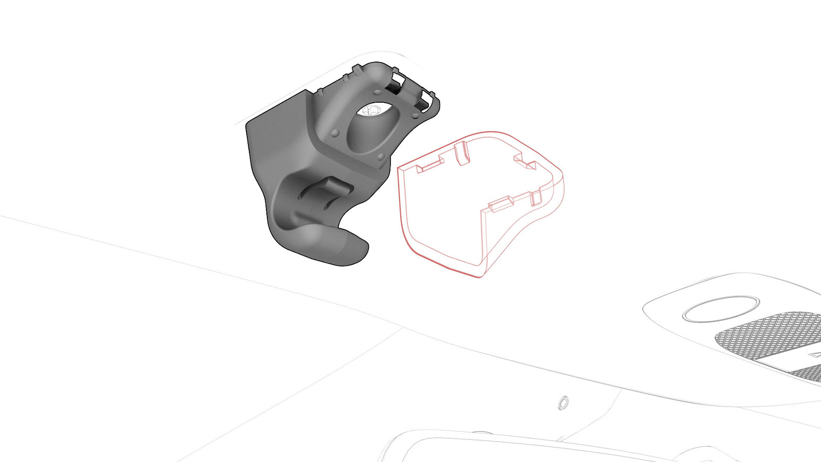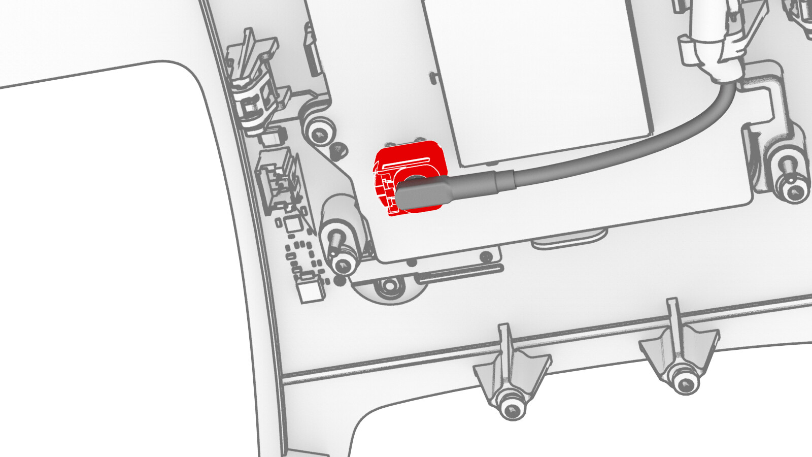 - Bring the quad camera upper cover to the windshield bracket, and then connect the windshield harness to the interior camera electrical connector.