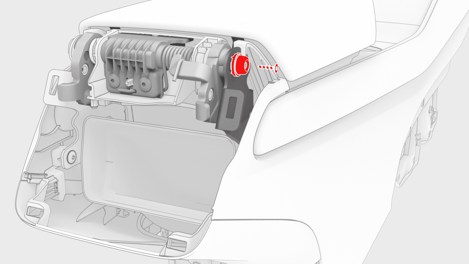 | Screw that attaches the cap of the arrest hinge pin to the center console |