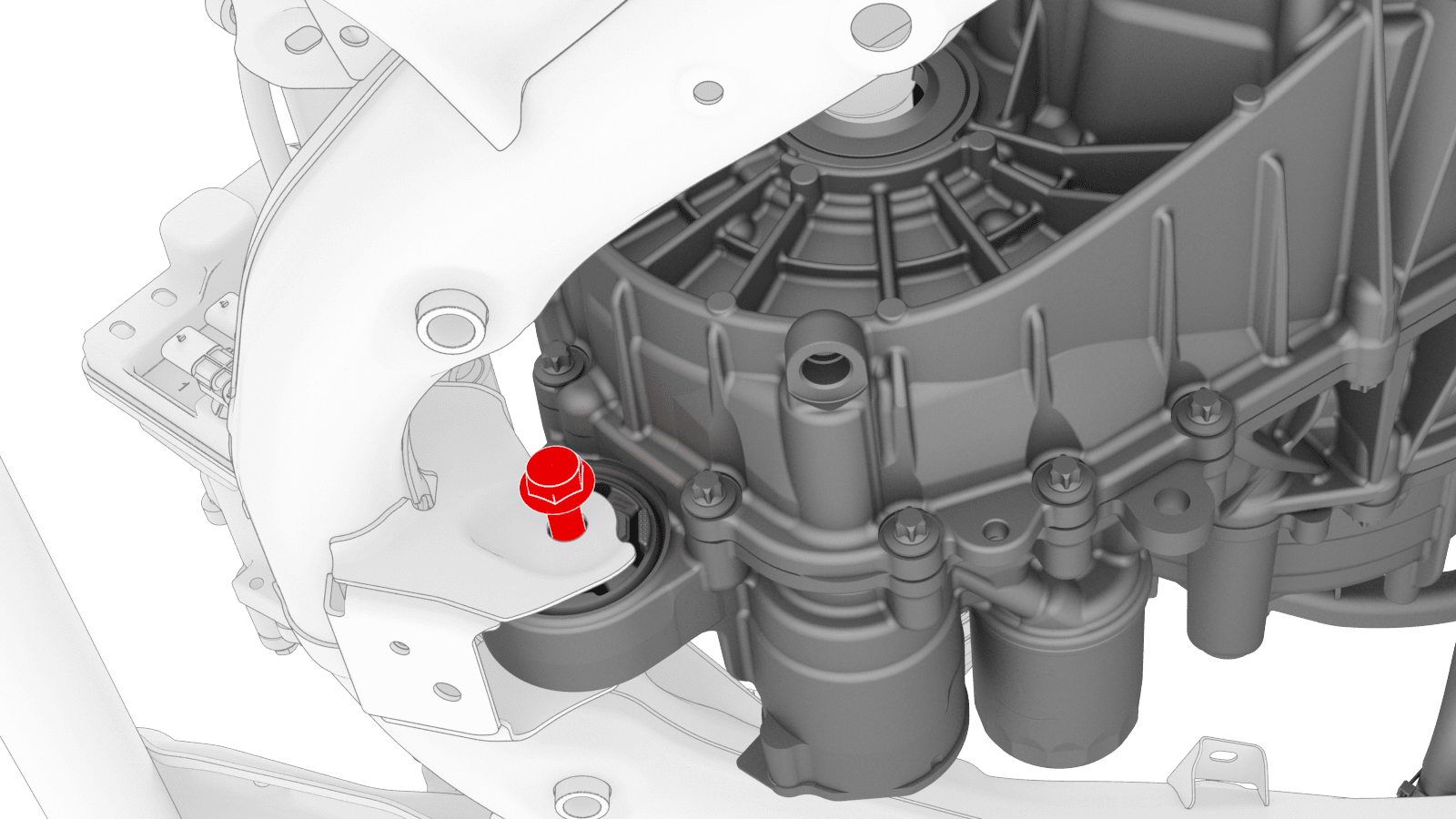 | Bolt that attaches the front drive unit to the front subframe |
