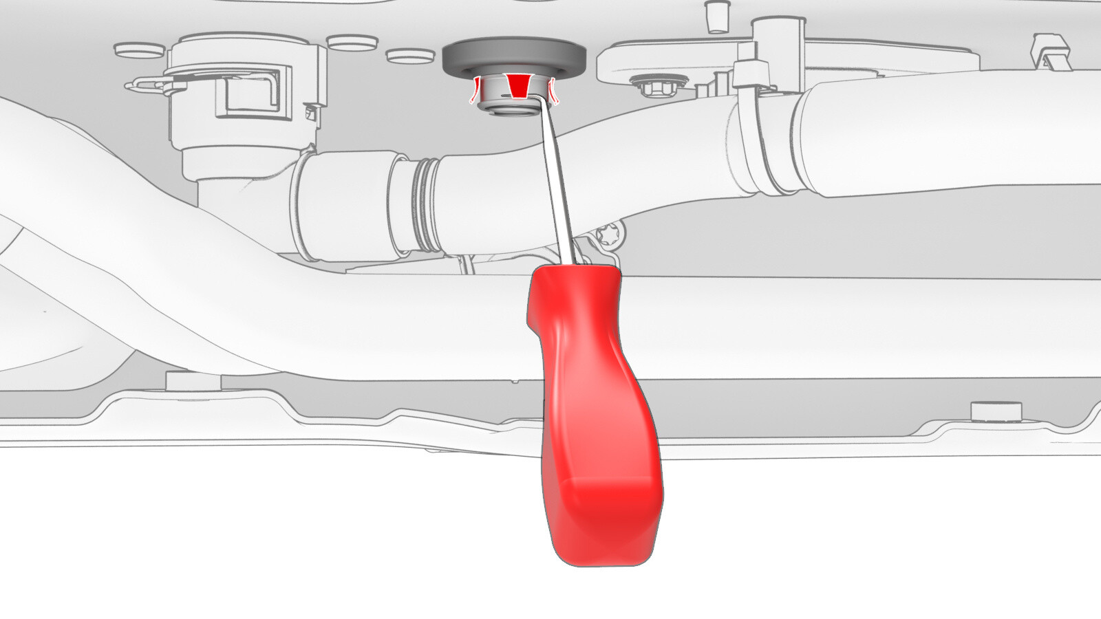 flood port into the opening at the LH underside of the HV battery