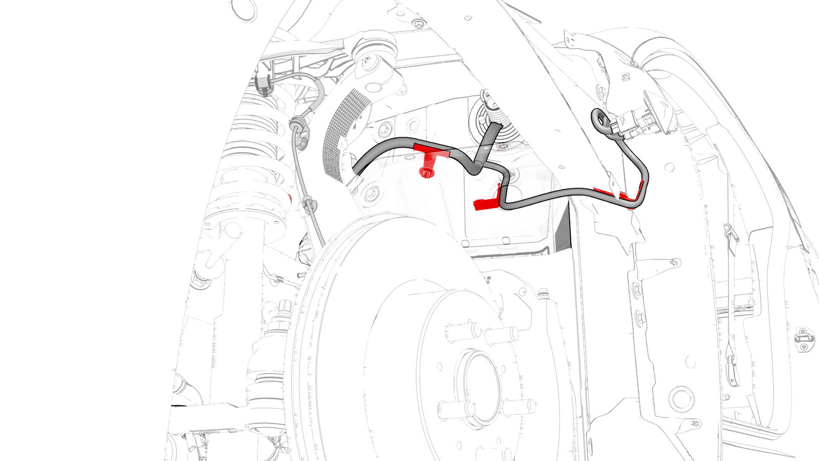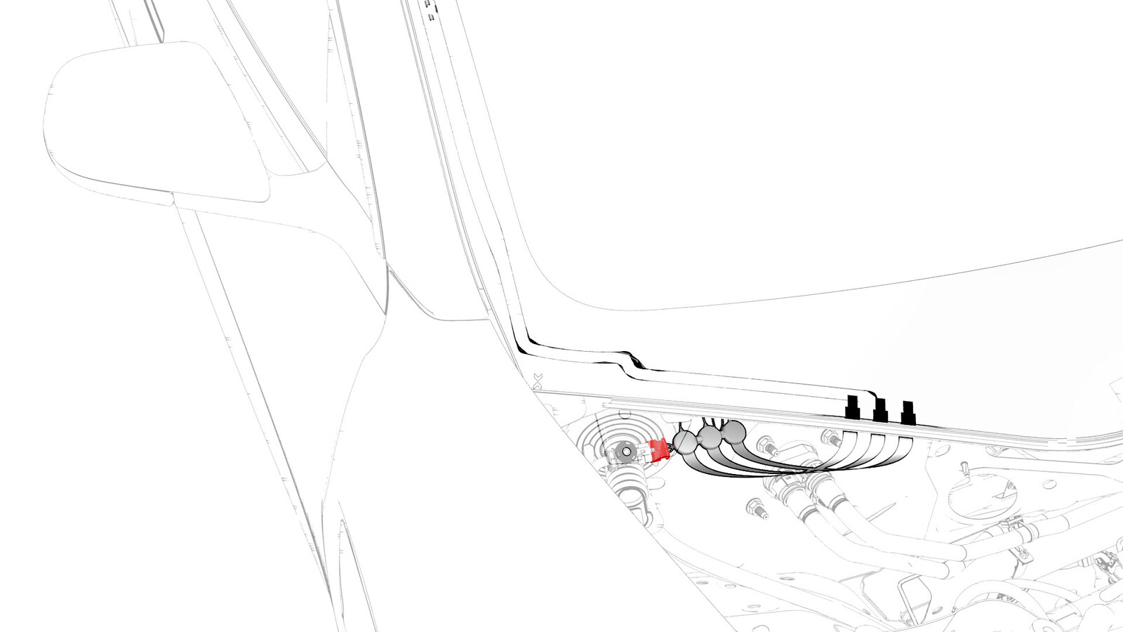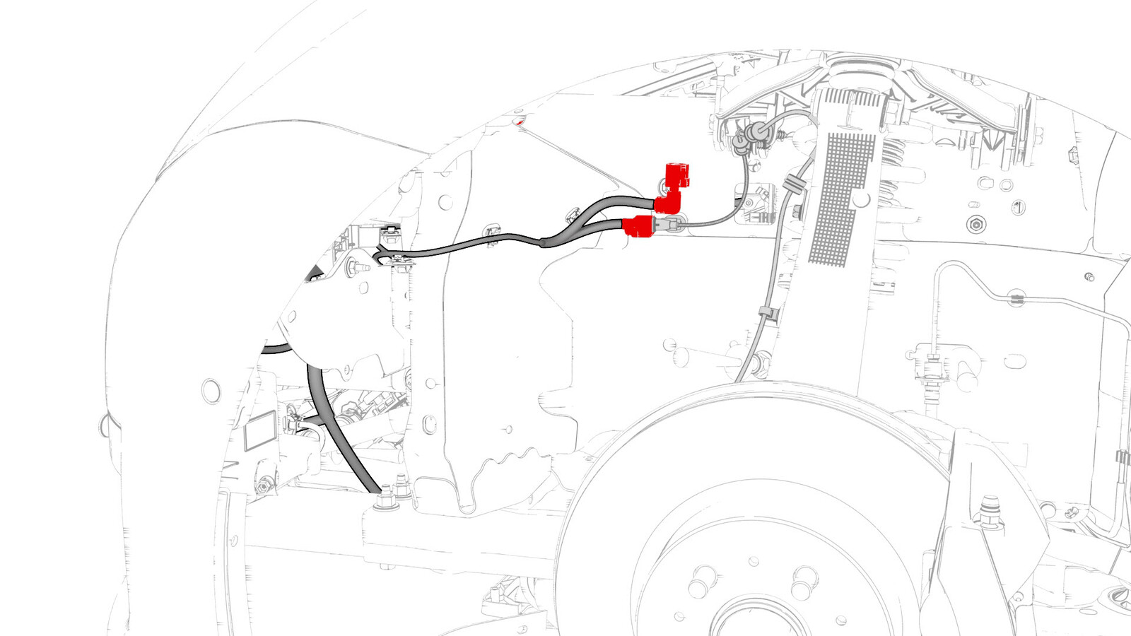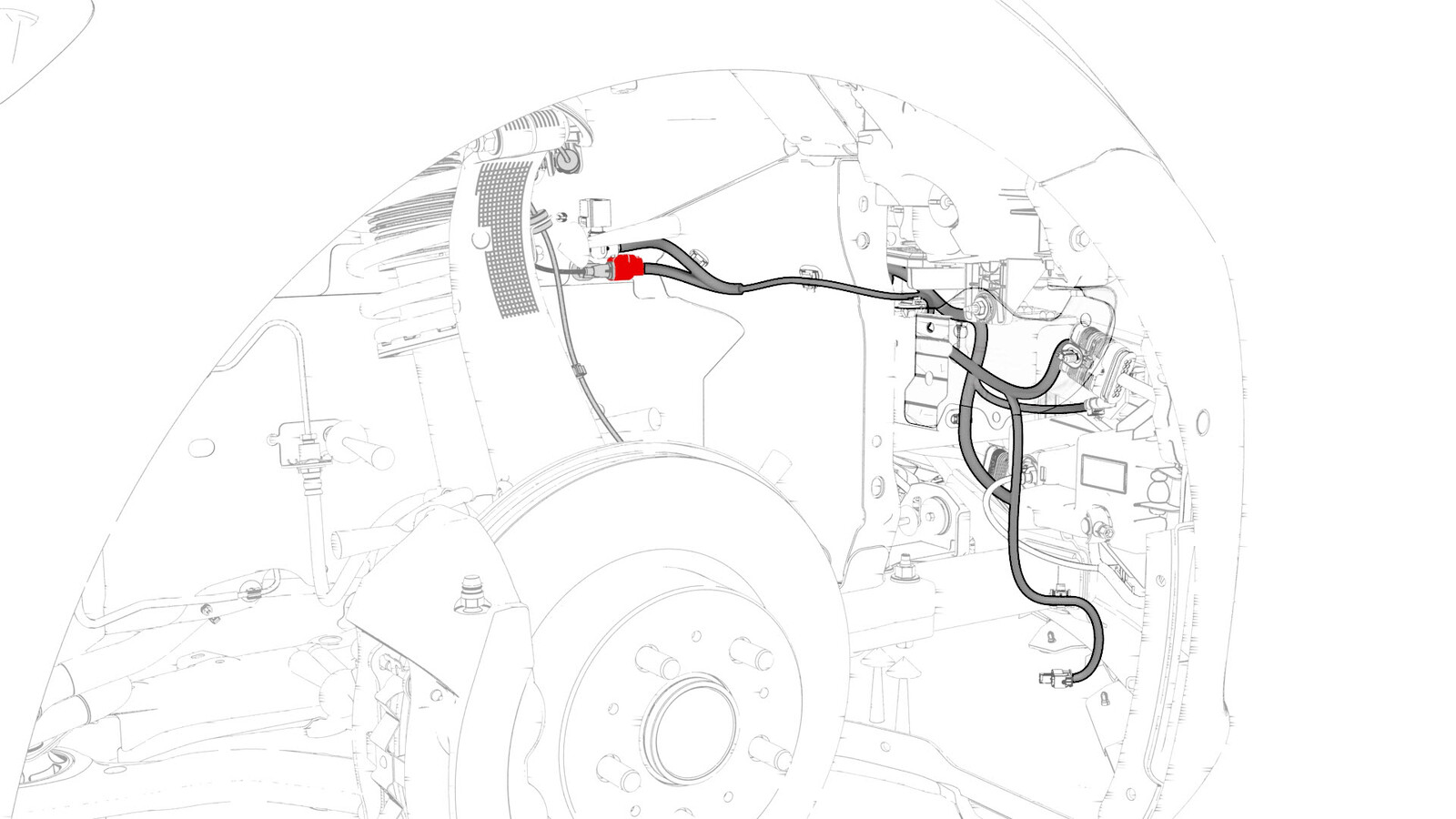 - Route the LH side of the front harness from the frunk to the LH wheel liner area.
