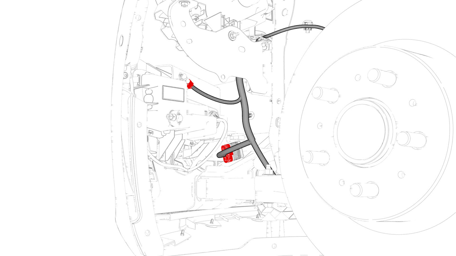 - Route the RH side of the front harness from the frunk to the RH wheel liner area.