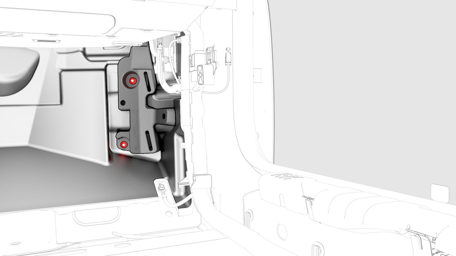 - Remove the glove box. See Glove Box - With Knee Airbags (Non-Heat Pump) (Remove and Replace).