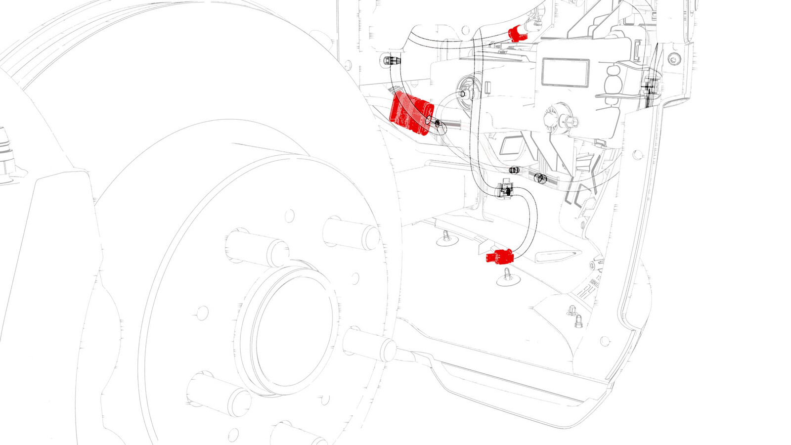 - Release the clips that attach the electrical harness to the body in the front LH wheel area.