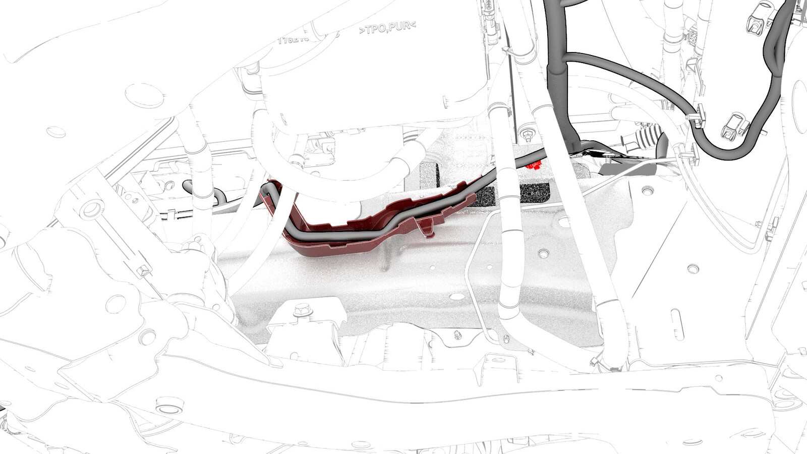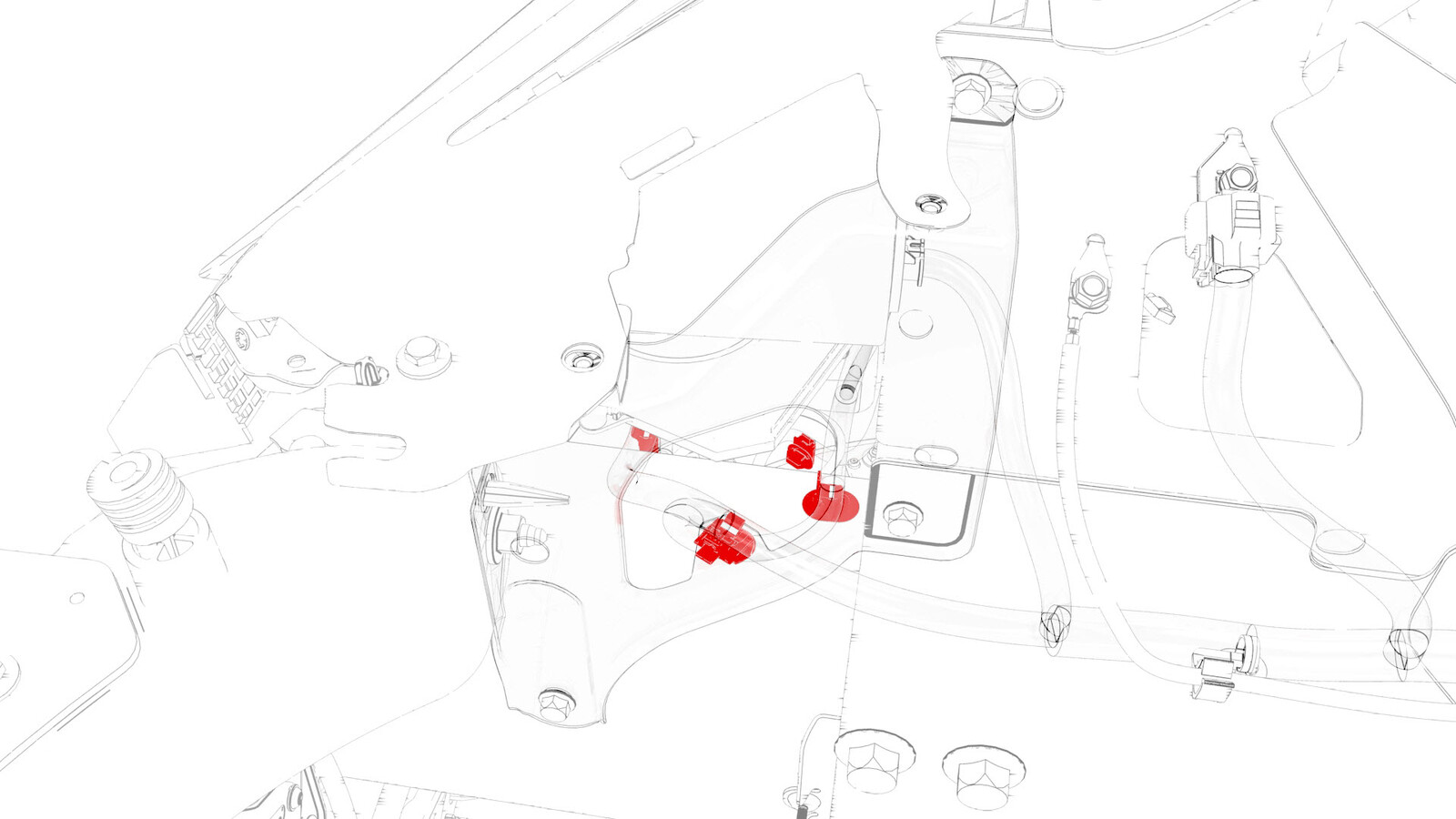 - Release the clips that attach the electrical harness to the body in the front LH frame rail area.
