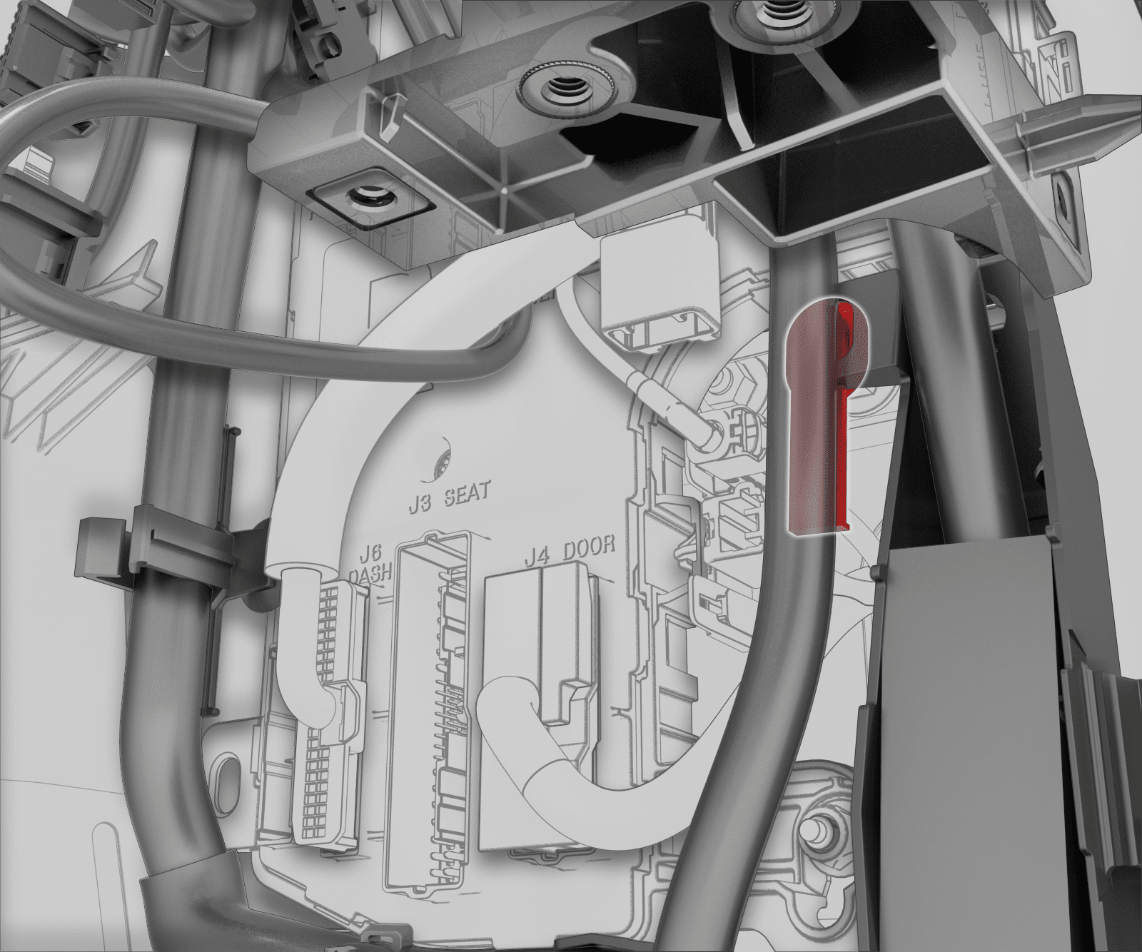 - Disconnect the DCDC LV positive cable near the RH body controller, and then release the DCDC LV positive cable clip.