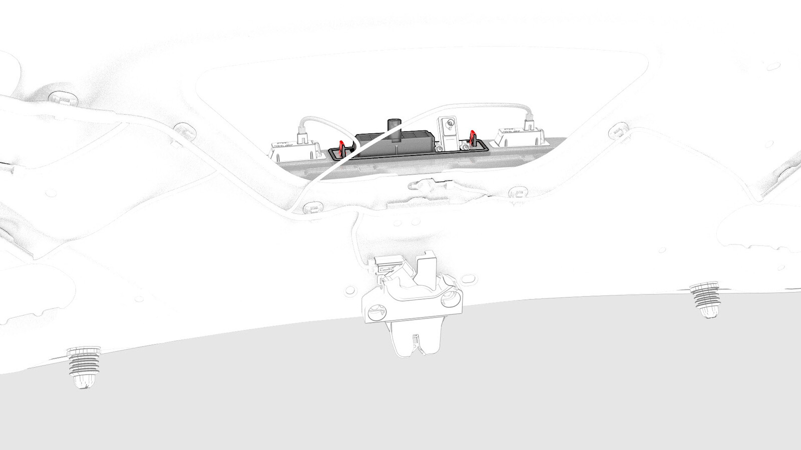 - Connect the electrical connectors to the trunk exterior release switch and the rear facing camera.
