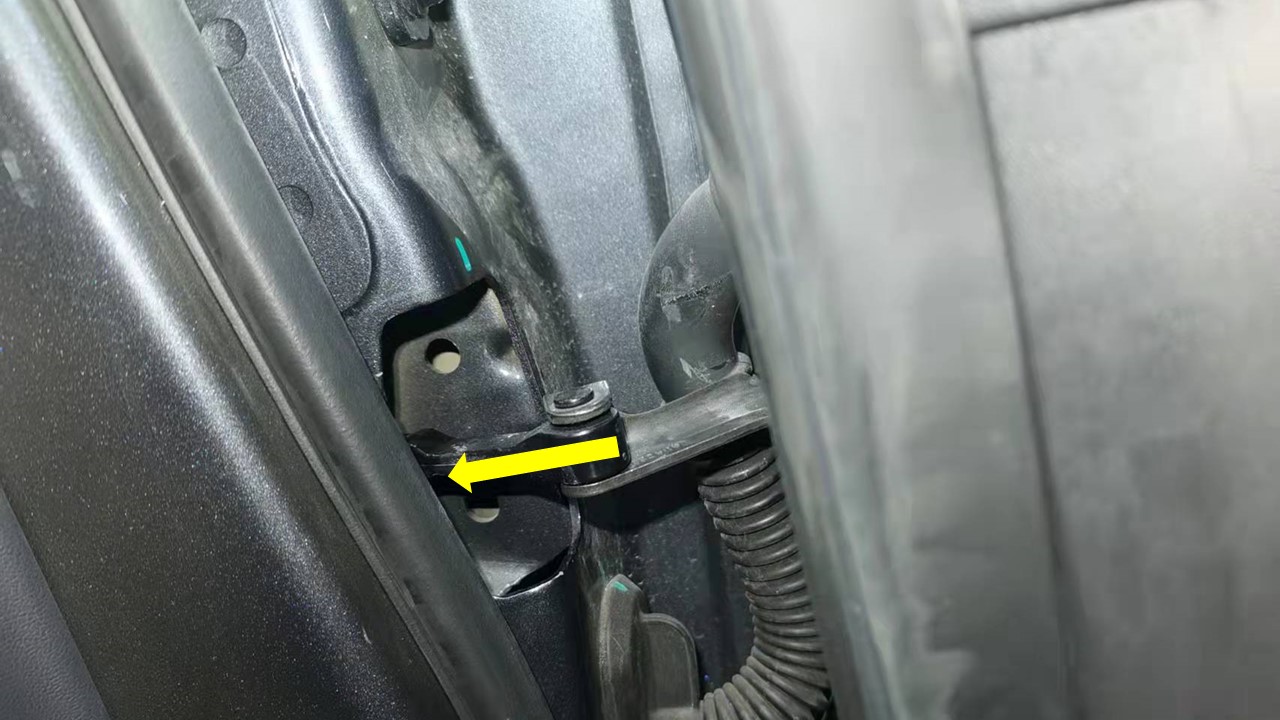 - Remove the LH front door check strap. See Check Strap - Door - Front - LH (Remove and Replace).