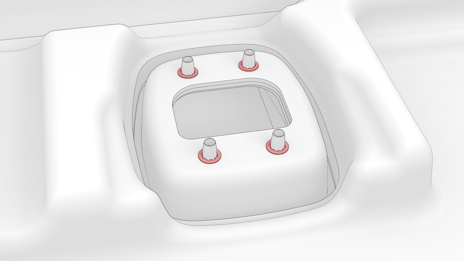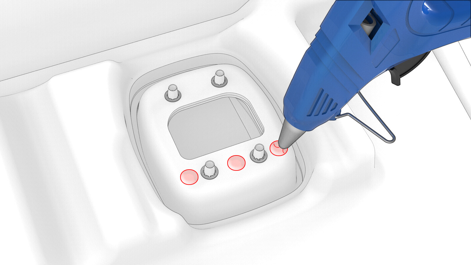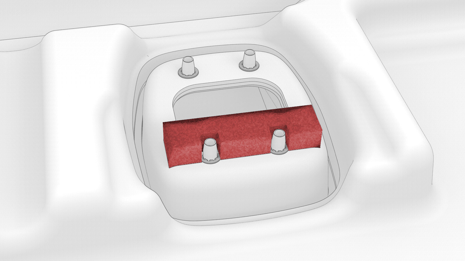 - If the tether anchor flip door had a foam block, use a glue gun to apply glue to the areas shown and then install the foam block. Allow the glue to fully dry before continuining.
