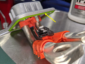 - Use an alcohol wipe to clean residual Penetrox from the charge port busbar connector contact surface, and allow 1 minute to dry.