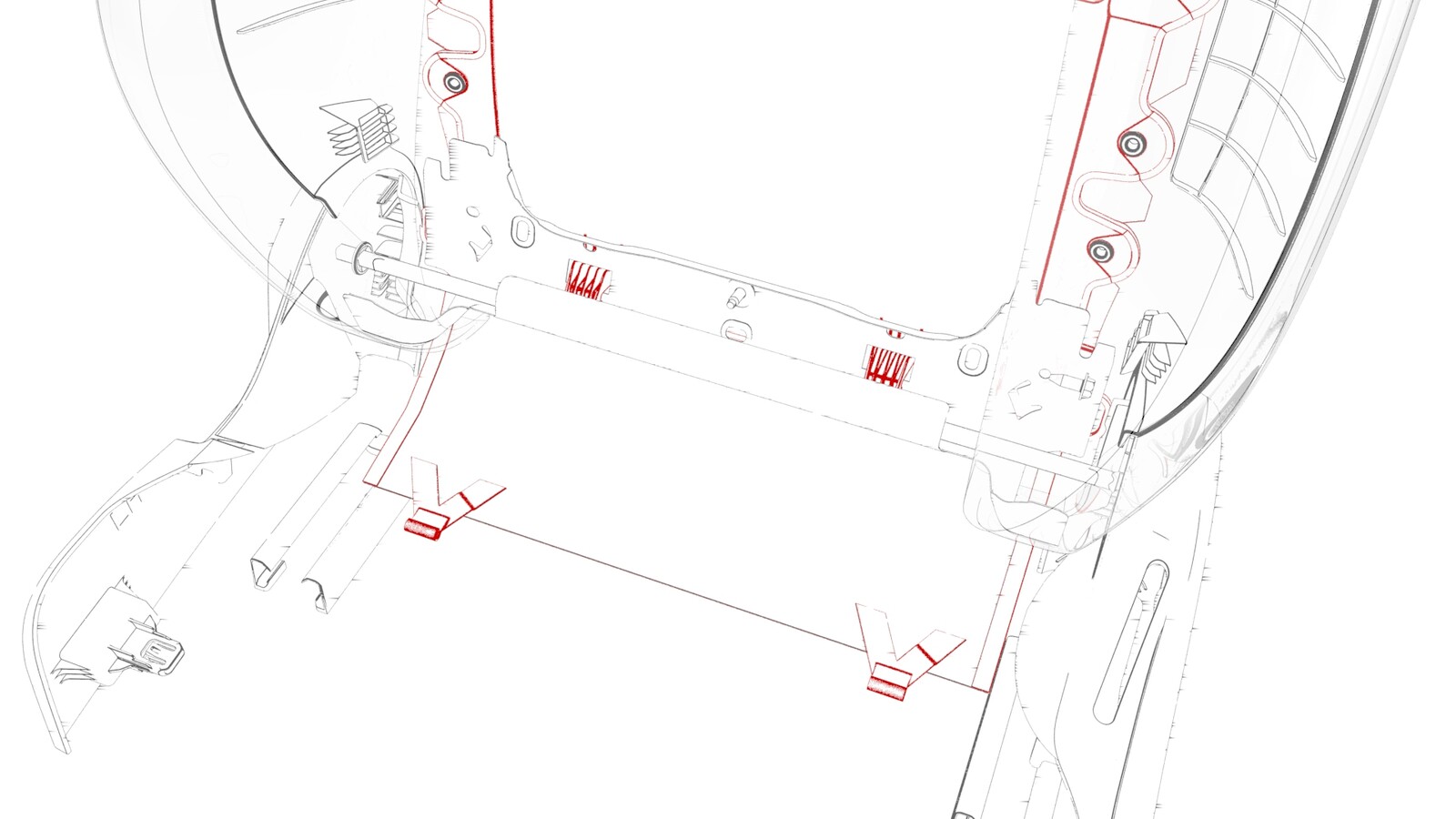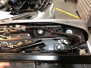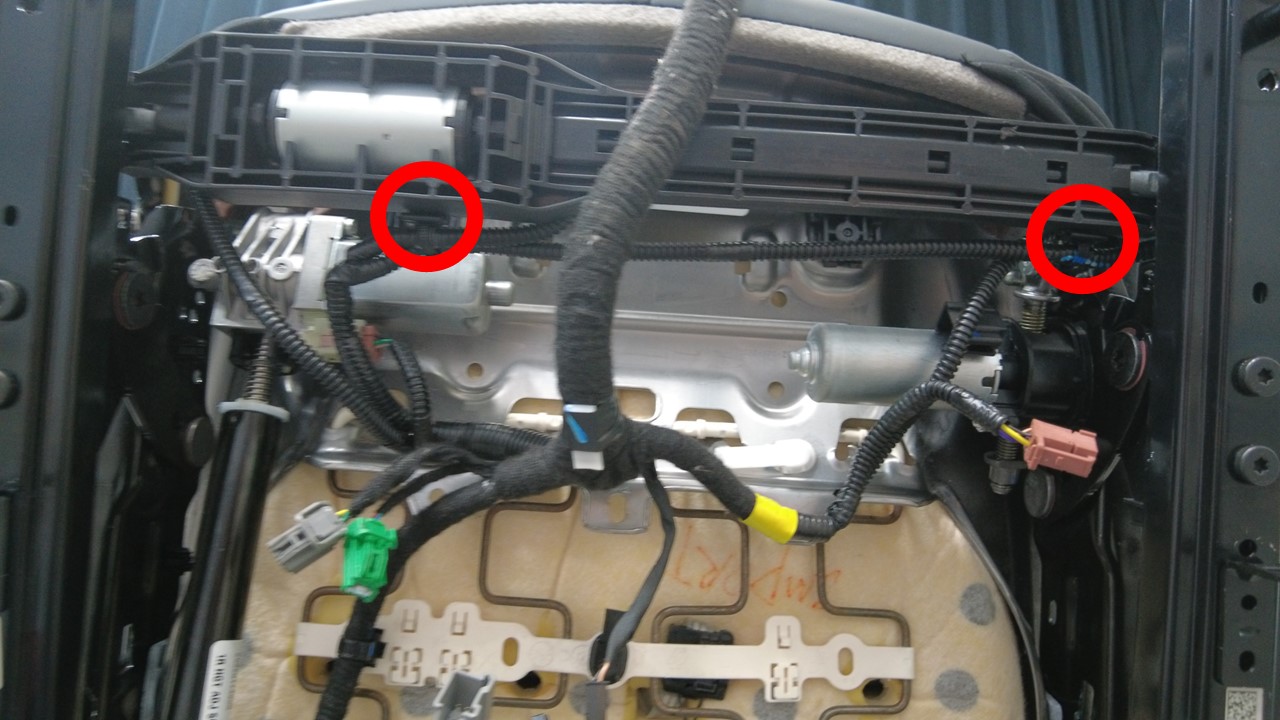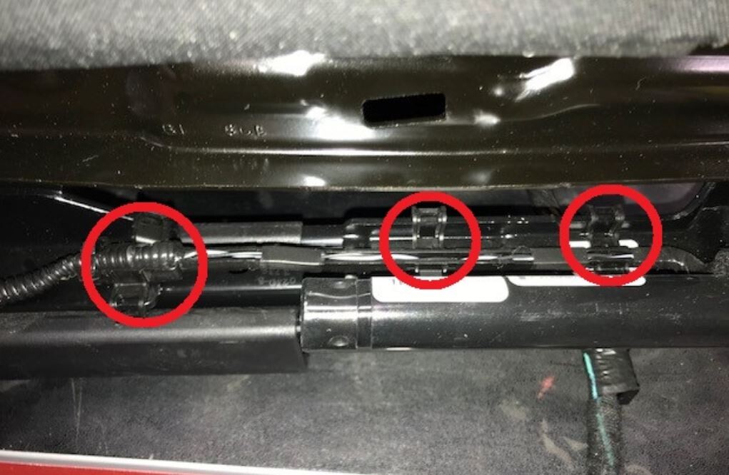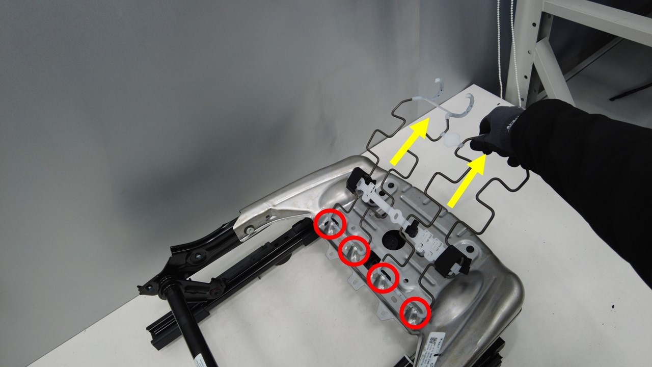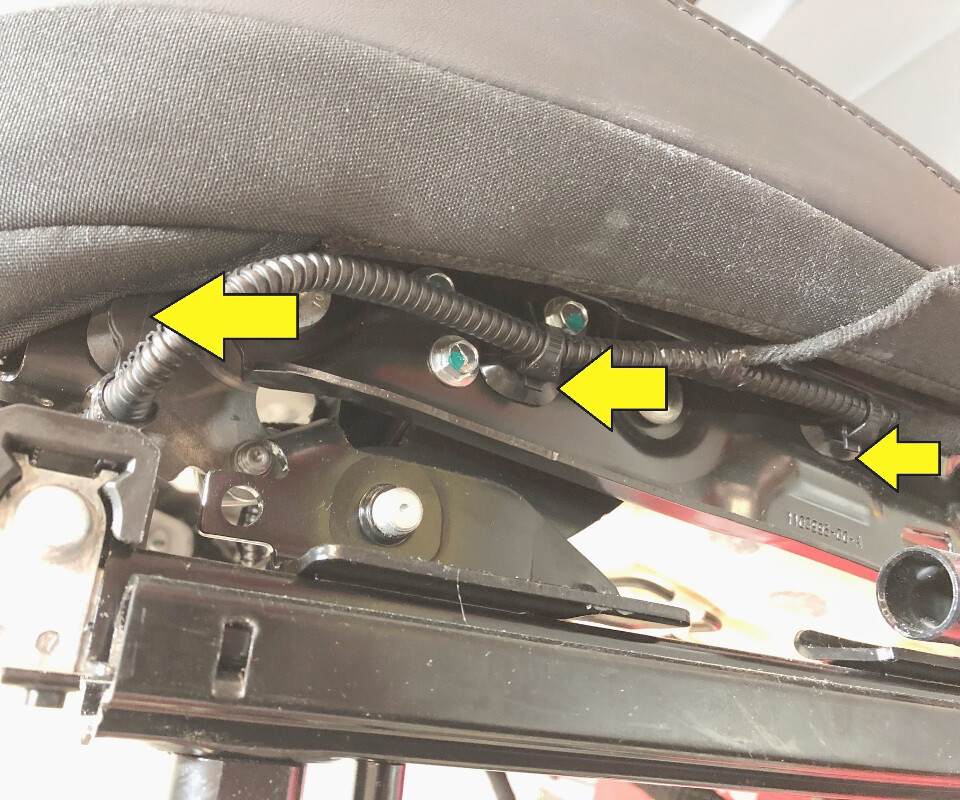 - Install the clips (x4) that attach the driver seat harness to the seat cushion frame.