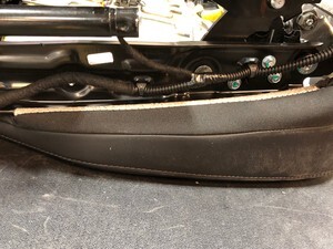 - Place the cushion pad assembly onto the seat cushion frame for installation. Insert the rear of the seat cushion to the seat bottom frame, and then lower the rest. Ensure the seat harness is routed through the back of the seat frame.