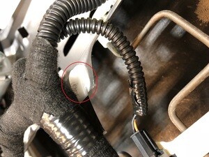 - Remove the clips (x4) that attach the driver seat harness onto the under side of the seat frame.