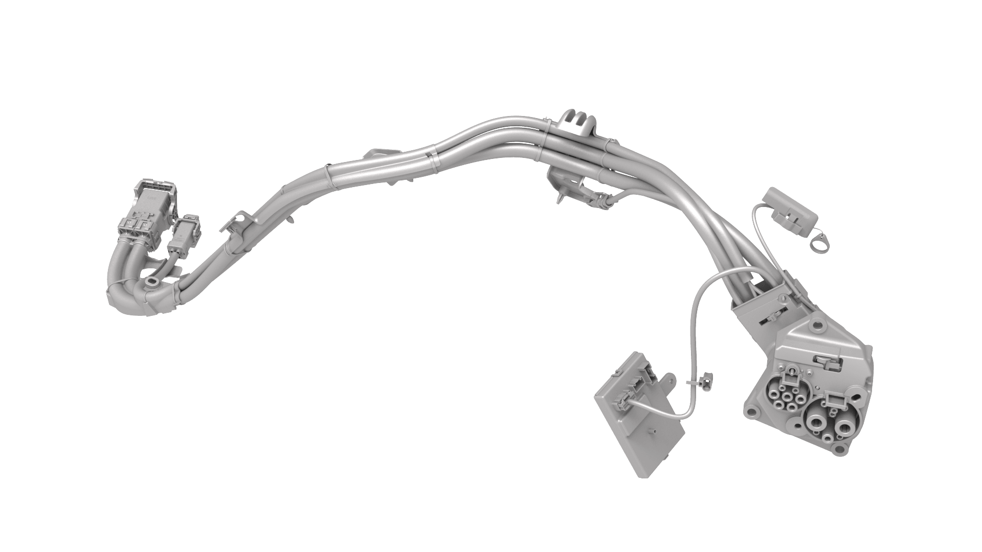 Put the new charge port harness into the vehicle and feed the harness through the LV electrical harness.